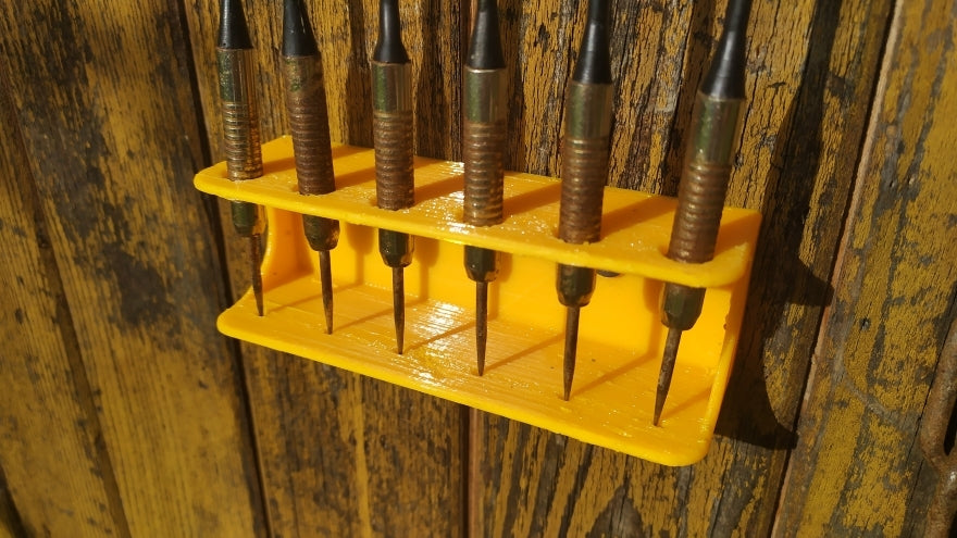 Držák šipek na zeď je navržen tak, aby poskytoval praktické úložné řešení až pro 6 šipek. Tento nástěnný držák poskytuje jednoduchý způsob, jak uspořádat šipky tak, aby byly během hry snadno dostupné. Díky minimalistickému designu držák diskrétně zapadne do většiny interiérů, ať už doma, v kanceláři nebo ve vyhrazené herně. Připevněním šipek na zeď jsou chráněny před zbytečným poškozením a udržovány mimo podlahu, což přispívá k udržení pořádku a organizace v prostoru pro šipky.