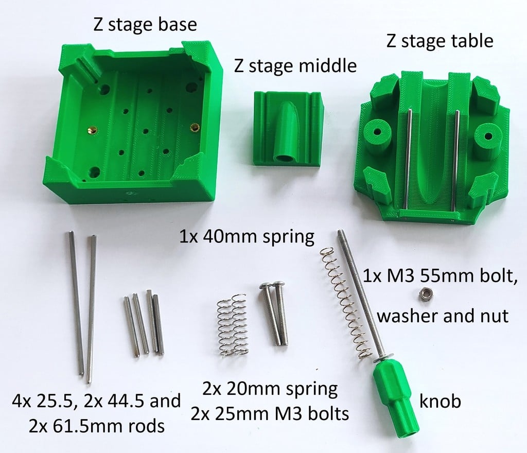 Ortogonální tištěná lineární etapa je navržena tak, aby poskytovala vysokou přesnost v polohování, s přesností kolem 10 mikrometrů. Tento produkt je ideální pro výzkumné projekty nebo aplikace, kde jsou přesné pohyby rozhodující. S 3D tištěnými díly a několika mechanickými komponenty, jako jsou 2 mm kovové tyče, 40 mm pružina a 55 mm M3 šroub s maticí a podložkou, je tato lineární etapa jak jednoduchá, tak účinná.