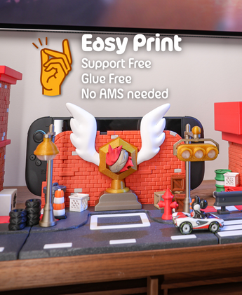 Tato dokovací stanice Podium Pit Stop je navržena pro vaši konzoli Nintendo Switch 2 a kombinuje funkčnost s jedinečným designem inspirovaným závody z kolekce Turbo District. Zajišťuje, že všechny porty a ventilace zůstanou plně přístupné. Model se snadno sestavuje bez použití lepidla a funguje také jako stylový stojan.