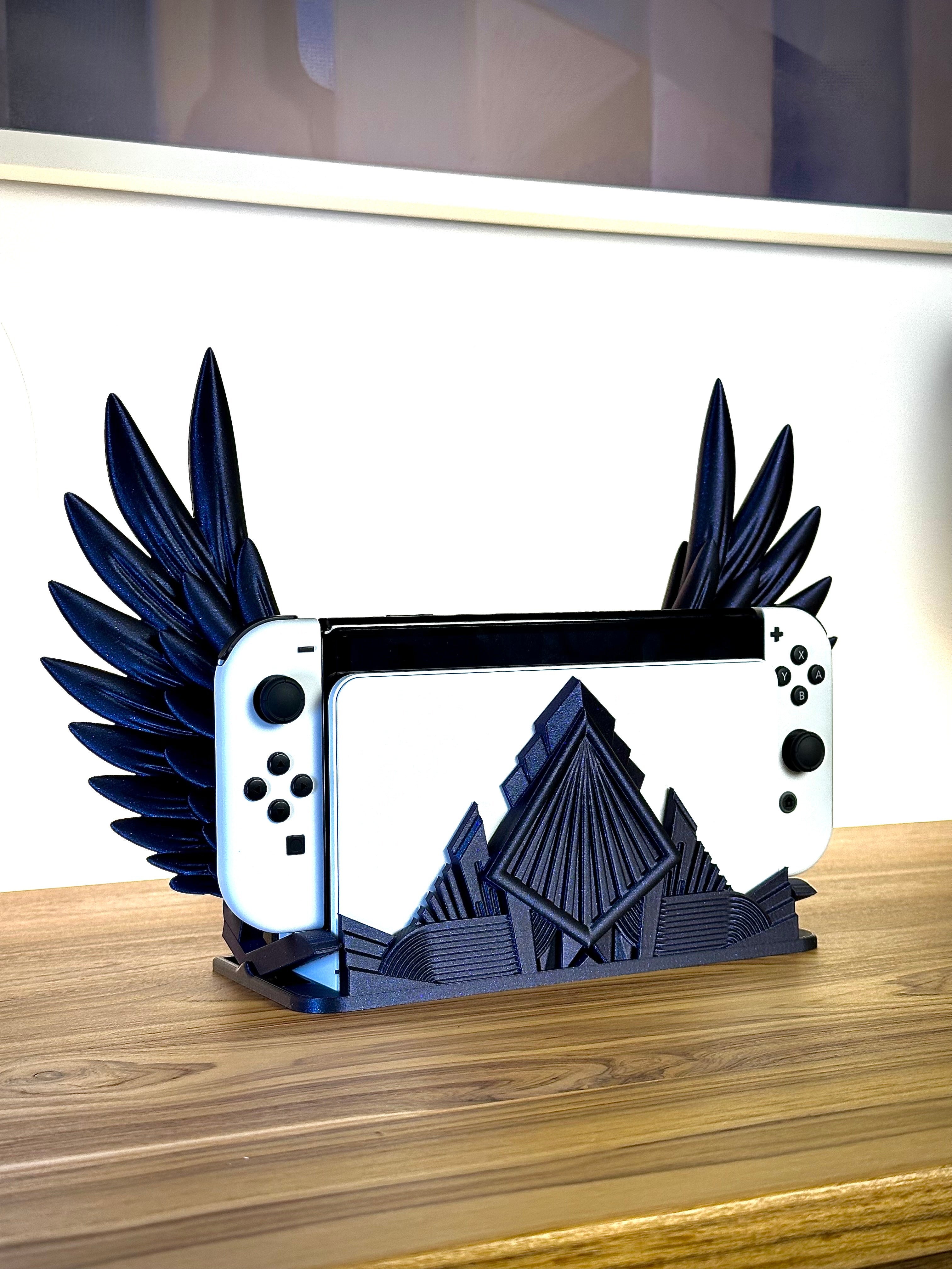 Tato dokovací stanice dodá vaší herní sestavě elegantní nádech art deco. Jedinečný design se vyznačuje křídly, která se zvedají, když dokujete svou Nintendo Switch nebo OLED model. Funguje jako stabilní stojan a poskytuje prostor pro kabely pro uklizené uspořádání.