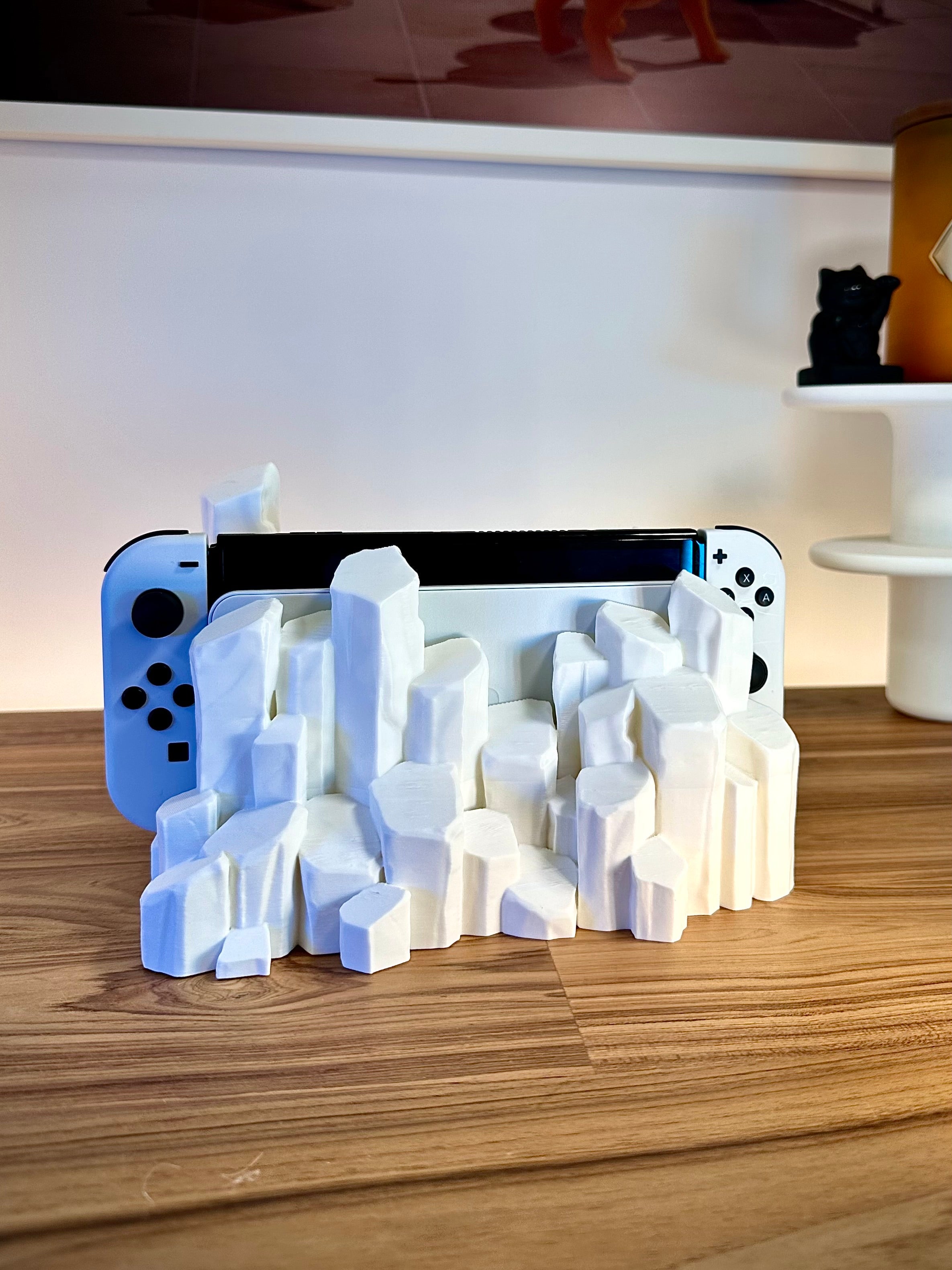 Tato dokovací stanice, inspirovaná elegantními křemennými formacemi, nabízí stylový a funkční stojan pro vaši Nintendo Switch nebo Switch OLED. Design zajišťuje plný přístup ke všem portům a udržuje optimální, nerušené větrání vzadu během hraní. Dodejte svému hernímu prostoru jedinečný nádech inspirovaný krystaly.