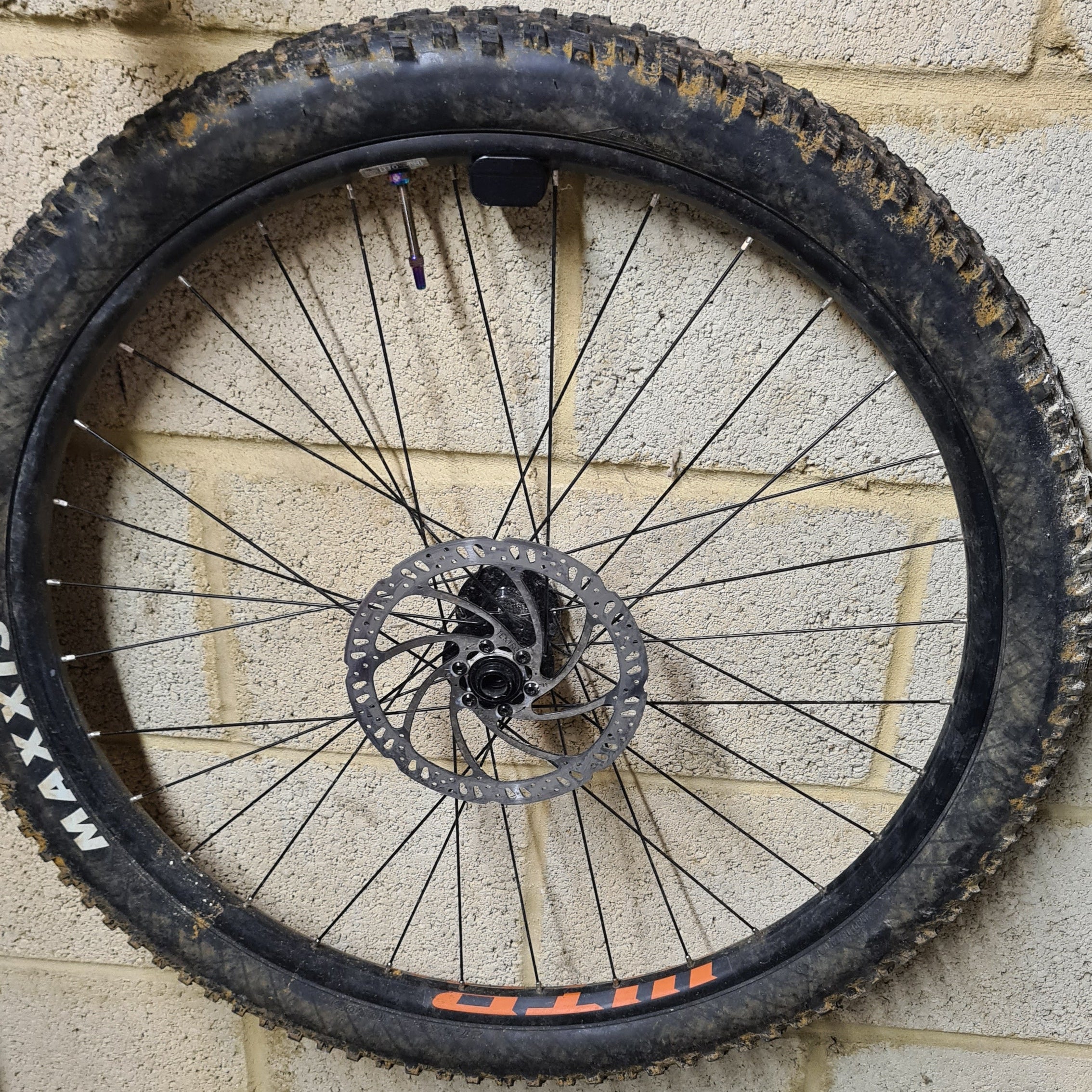 Nástěnný držák pro zavěšení 27" (palcového) kola, například na zeď v garáži. Držák se hodí do mezery mezi 2 standardními paprsky kola.
