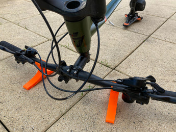Stojan se montuje na řídítka kola a umožňuje snadné otočení kola vzhůru nohama, takže máte plný přístup ke všem komponentům. Je kompatibilní s řídítky o průměru 23 mm, což zajišťuje stabilní a bezpečné upevnění během práce.