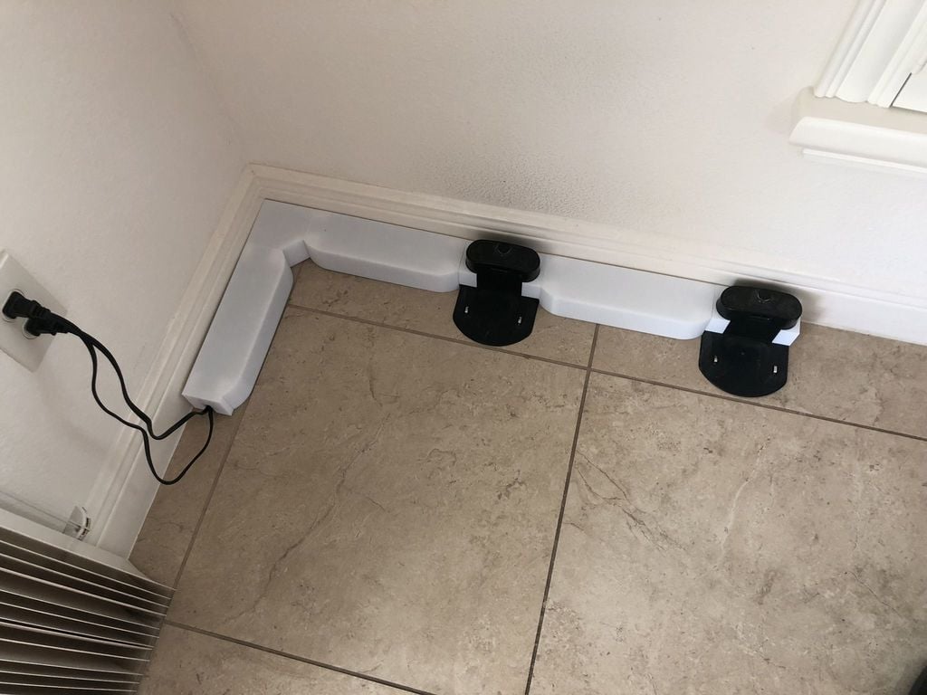 Tento systém je navržen tak, aby zabezpečil a uspořádal vaši dokovací stanici Roomba a související napájecí kabely. Udržuje dokovací stanici stabilně na místě, čímž zabraňuje jejímu posouvání nebo kroucení, a zajišťuje tak, že se váš Roomba může bez problémů dokovat pro nabíjení. Jako praktický držák kabelů lze přebytečné kabely snadno vést a skrýt v integrovaných kanálech a rohových dílech, což přispívá k úhlednějšímu vzhledu ve vaší domácnosti. Systém, který funguje jako centrální dokovací stanice pro kabely a zařízení, lze použít k uspořádání jednoho nebo více systémů Roomba.