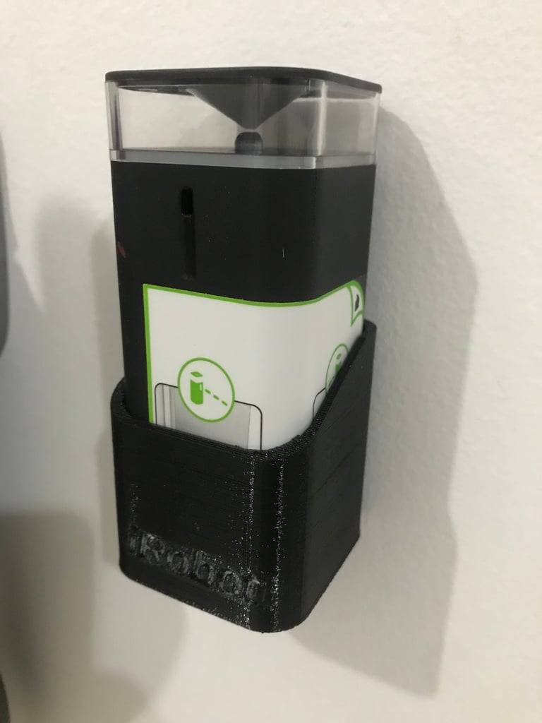 Malý držák pro váš Roomba Beacon. Tento držák usnadňuje sledování vašeho Roomba Beacon tím, že jej připevníte na zeď, kde skladujete své čisticí prostředky.