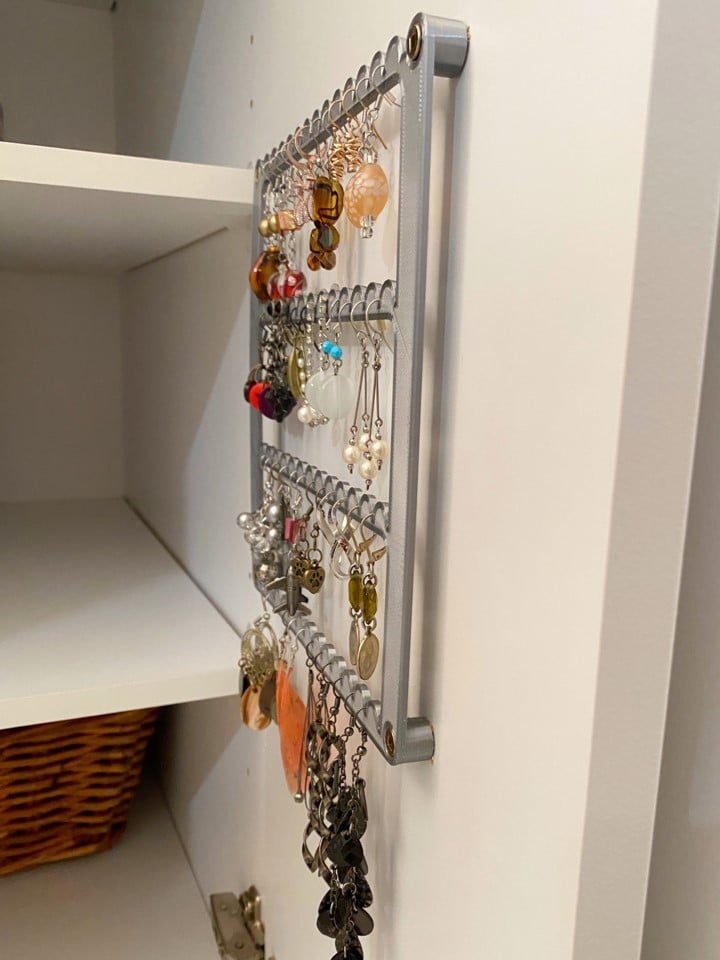 Tento nástěnný organizér na náušnice je navržen tak, aby poskytoval organizovaný a jasný přehled o vaší sbírce šperků.