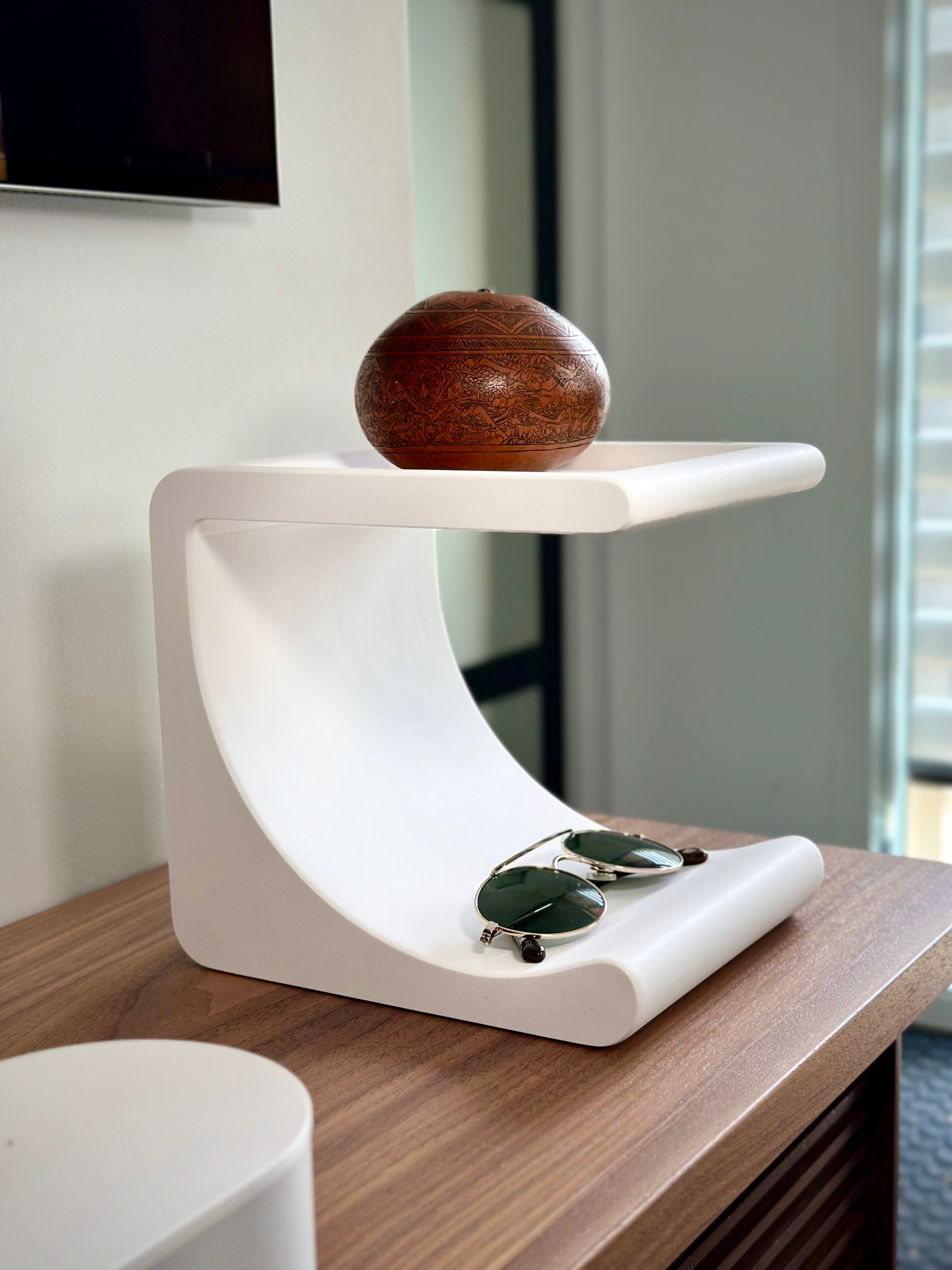 Tato police Comma je funkčním doplňkem pro moderní domov. Minimalistická police je ideální pro ukládání každodenních maličkostí, jako jsou klíče, karty a sluneční brýle ve vstupní hale nebo v kanceláři. Vyberte si mezi standardní verzí nebo verzí s místem pro kaktus nebo sukulent.