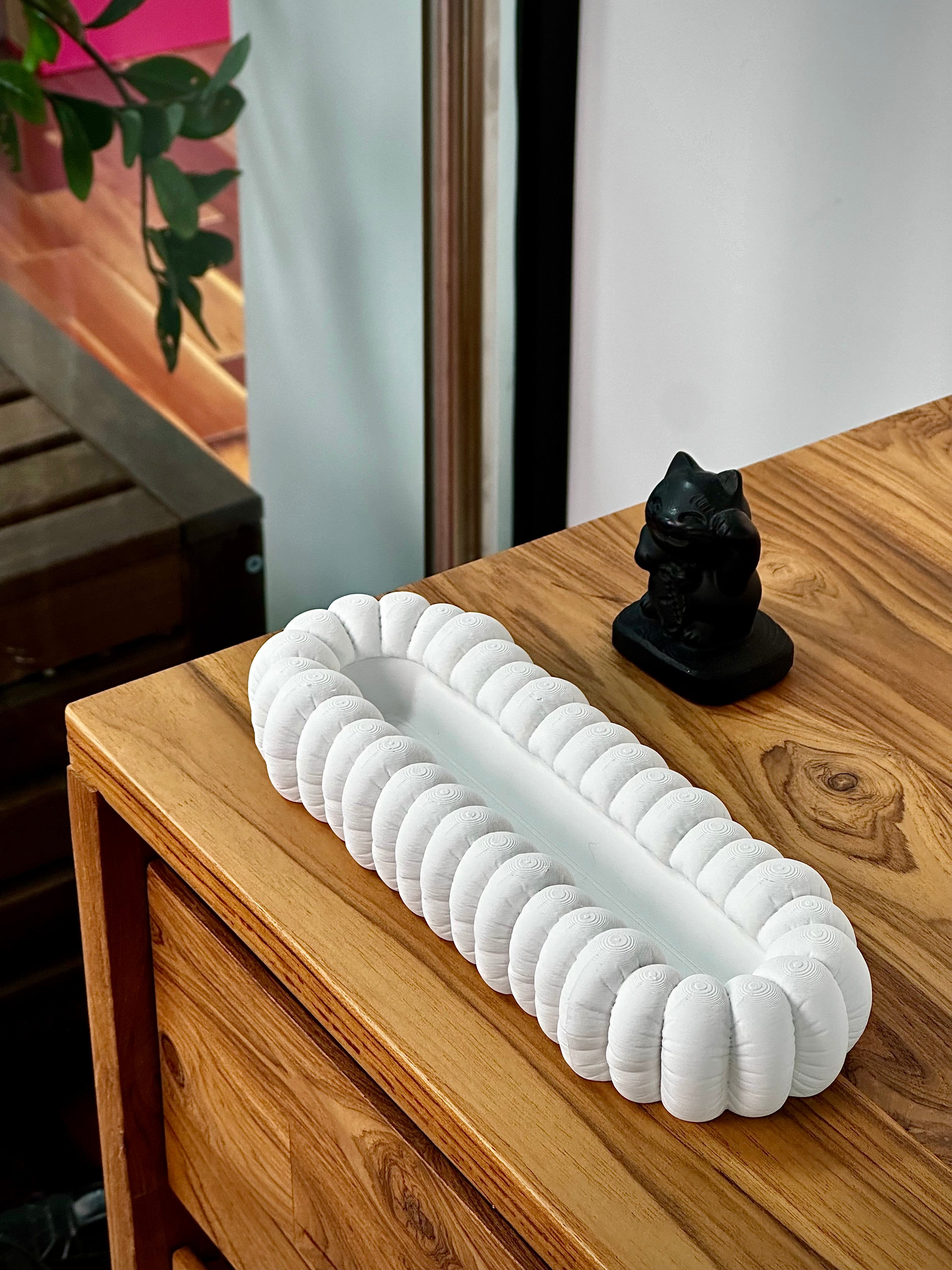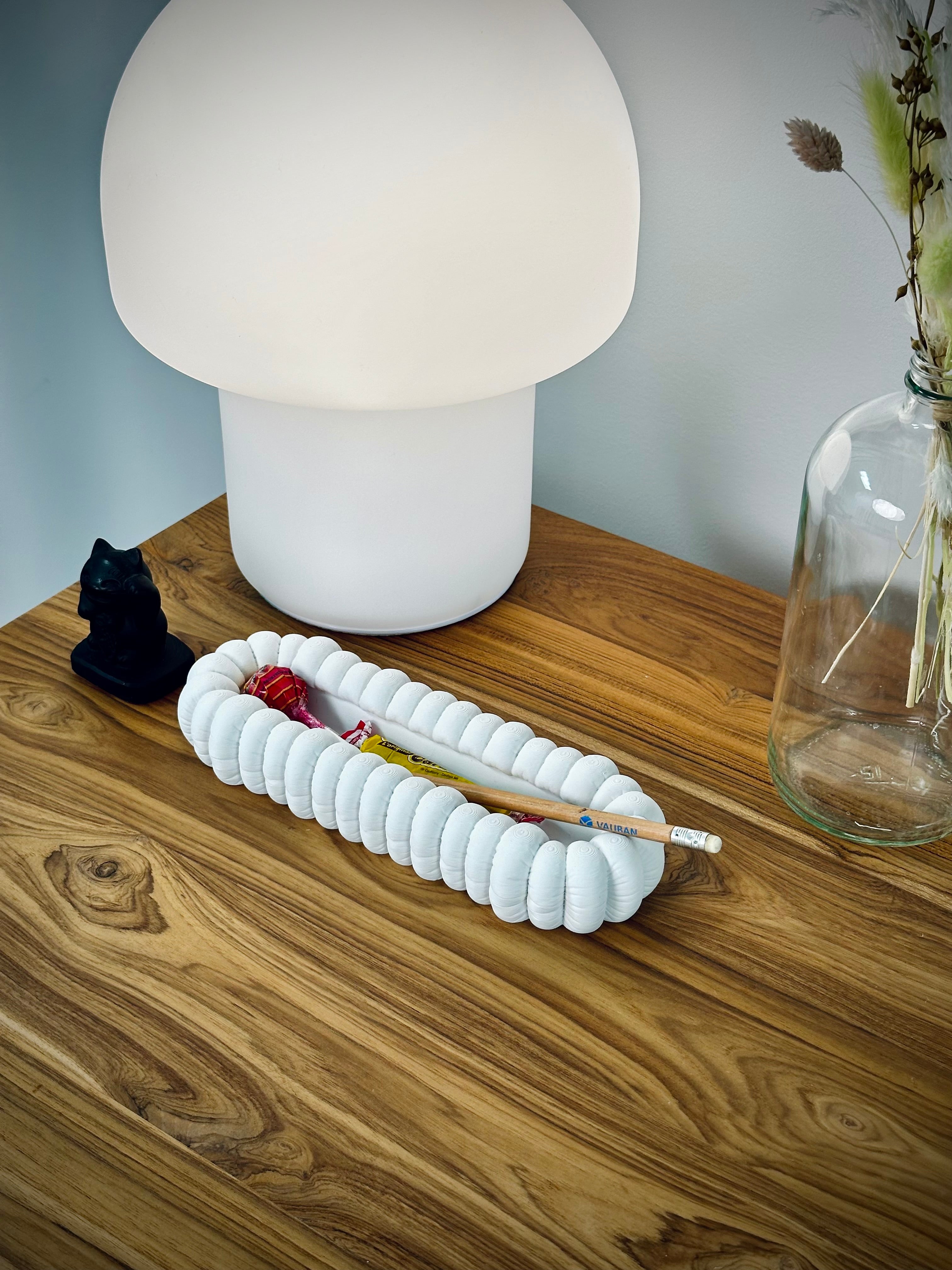 Tento podnos s obláčky je moderní organizér, který je ideální pro udržení pořádku na vašem stole. Vzdušný, nafouklý design dodá vašemu interiéru současný nádech. Použijte tento všestranný podnos pro uložení drobných každodenních předmětů, jako jsou klíče, mince, pera nebo vaši peněženku. Je to stylové řešení pro udržení vašich věcí pod kontrolou.