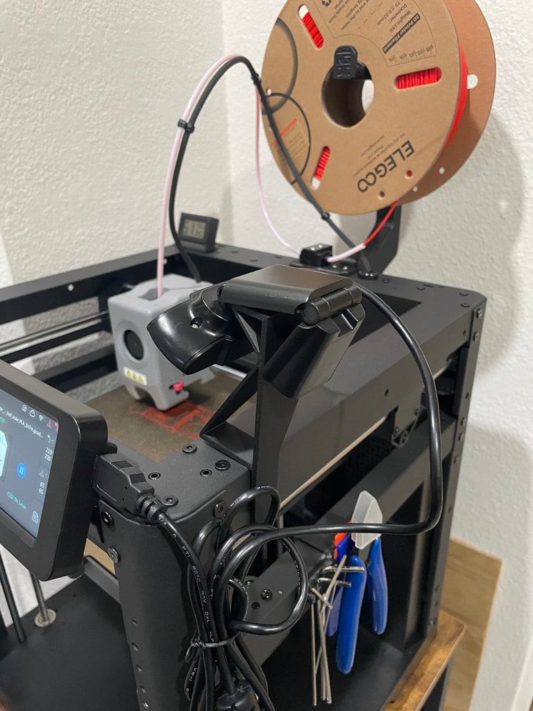 Promyšlený design držáku zajišťuje, že vaše USB webová kamera sedí bezpečně, aniž by rušila pohyby tiskové hlavy, což z něj činí praktický doplněk pro zlepšení vašeho monitorování tisku. Držák je kompatibilní s většinou USB webových kamer, které lze připevnit na horní část obrazovky, a využívá tak firmware Flashforge založený na Klipperu.