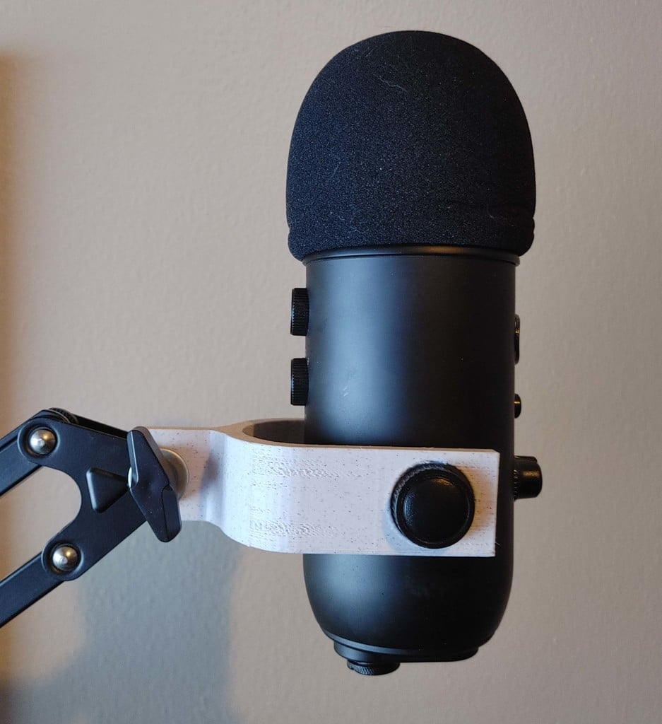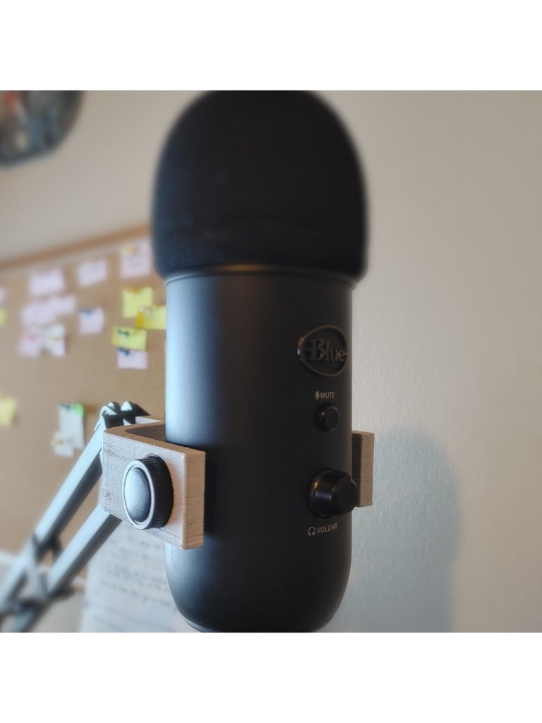 Držák mikrofonu Blue Yeti je navržen speciálně pro použití s mikrofony Blue Yeti. Umožňuje umístit mikrofon do ideální polohy pro nahrávání. Spolu s mikrofonem můžete použít přiložené podložky a křídlové matice, které jsou součástí kovového krytu, který je součástí Blue Yeti. Toto zařízení lze také přizpůsobit vašemu psacímu stolu pro snadný přístup a použití.