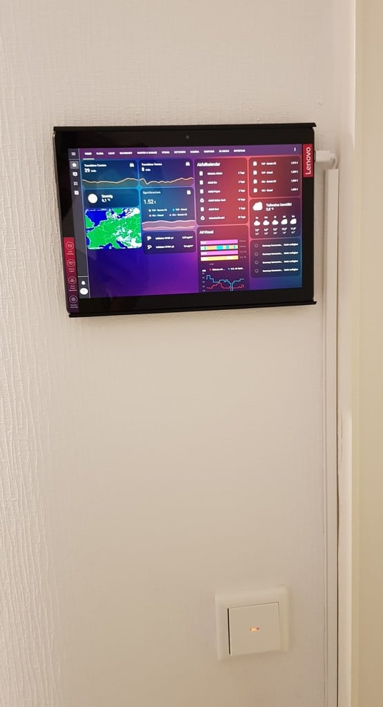 Tento nástěnný držák je určen pro Lenovo Tab M10 z roku 2018 s 10" obrazovkou. Je ideální pro použití tabletu připevněného na stěně v režimu na šířku a je ideální pro použití s Home Assistant.
