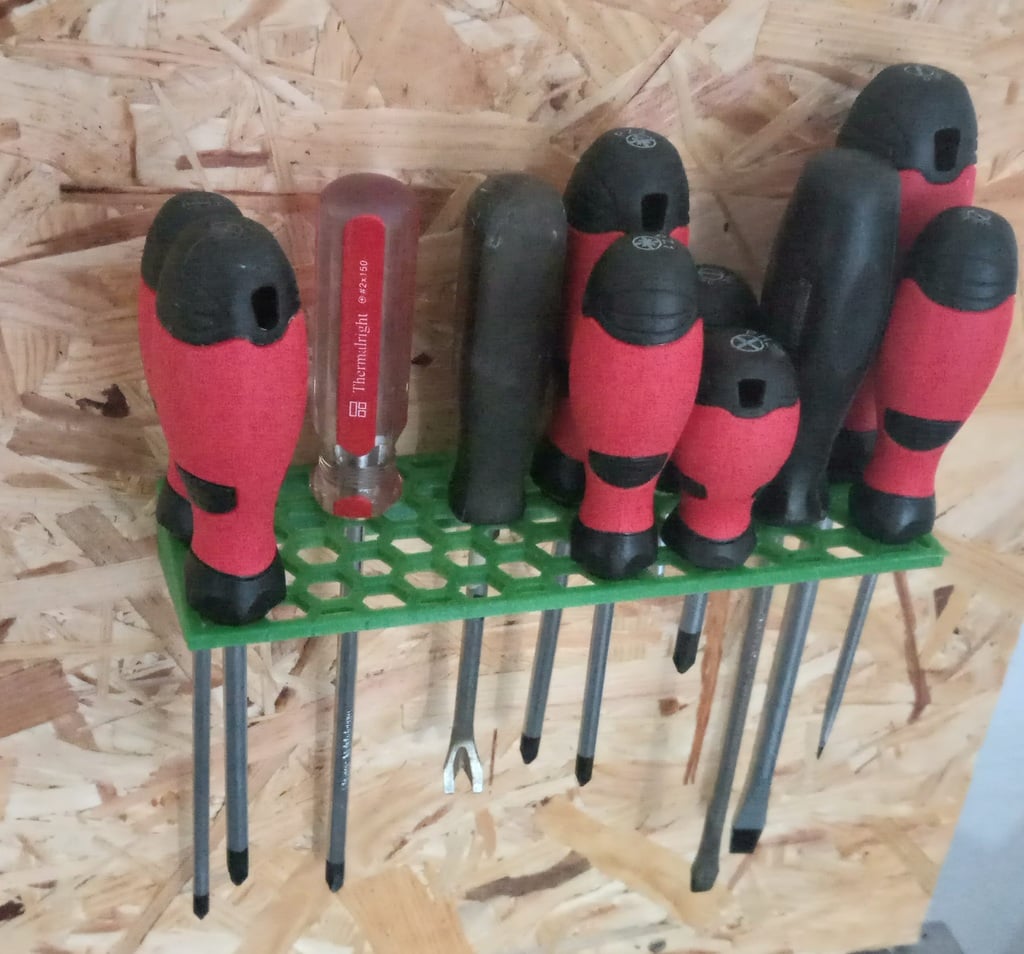 Držák šestihranných šroubováků je robustní a praktický nástroj pro uložení šroubováků. Tento držák je navržen tak, aby se dal připevnit přímo na kolíkovou desku, a poskytuje tak snadný přístup k vašim šroubovákům a zároveň udržuje vaši dílnu čistou a uspořádanou. Zajišťuje také bezpečné uložení šroubováků, které jsou vždy po ruce.
