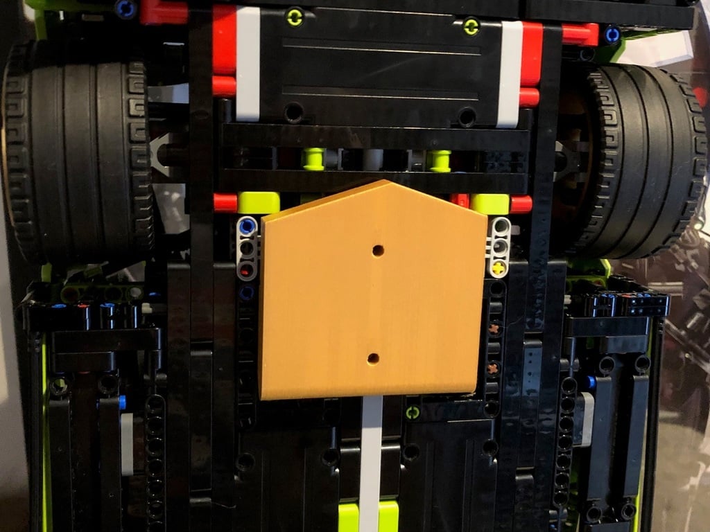 Toto je 3D tištěná montáž na stěnu pro Lego Lamborghini Sián FKP 37. Montážní háky se zasouvají do dvou otvorů ve spodní části vozu. Věnujte pozornost šipce v horní části montážní desky, která udává, kde bude centrální osa vozu.