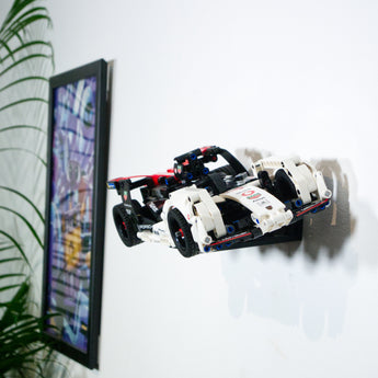 Tento nástěnný držák je speciálně navržen pro Technic Formula E Porsche 99X. Držák umožňuje vystavit vůz s odstupem od zdi, buď otočený doleva, nebo doprava. Součástí je také díl pro plochou montáž a model lze snadno sundat a znovu nasadit.