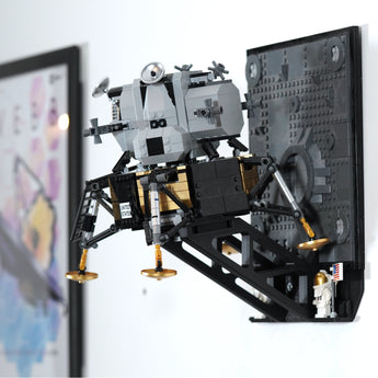Dette vægbeslag giver dig mulighed for at udstille din Lunar Lander med eller uden måneoverflade og minifigurer. Løsningen sikrer en stabil montering, hvor modellen let kan tages ned igen. Sættet monteres enkelt på væggen og skaber en elegant præsentation af dit rumsæt.