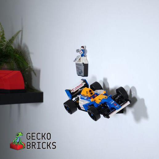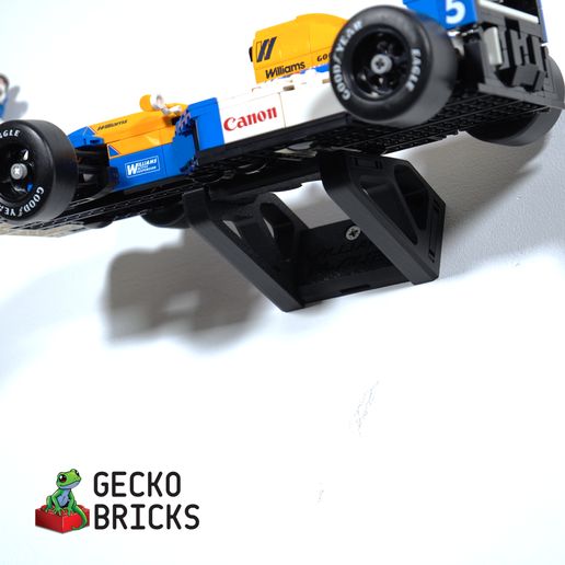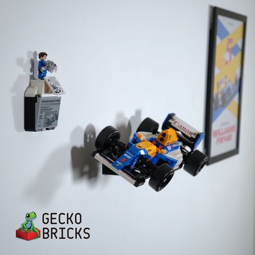 Få din Williams FW14B op på væggen med dette smarte vægophæng. Beslaget lader dig vælge mellem en skrå eller lodret præsentation af racerbilen. Det er nemt at montere og afmontere modellen, og sættet indeholder også holdere til det medfølgende podium og informationskort.