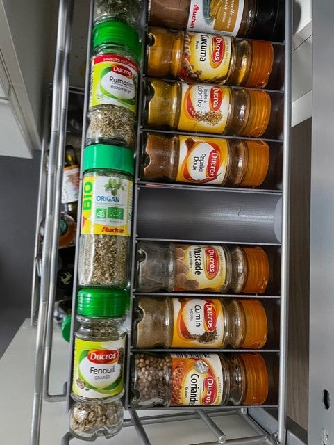 Tento držák na koření nabízí praktické řešení pro skladování a organizaci koření v kuchyni. Design umožňuje vlastní nastavení, které efektivně využívá prostor a udržuje sklenice s kořením snadno dostupné během vaření. Držák lze namontovat na stávající kuchyňský nábytek pro stabilní umístění, což přispívá k uklizenému a funkčnímu pracovnímu prostoru. Je to funkční doplněk do každé kuchyně, která hledá strukturované úložiště koření.