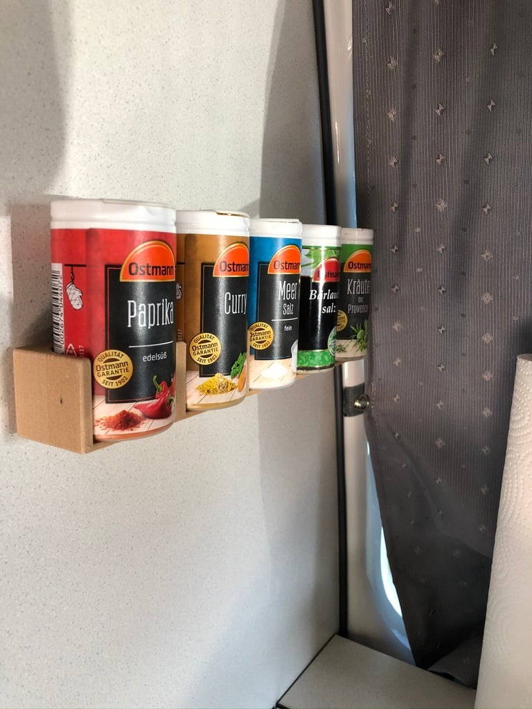Tato police na koření nabízí jednoduché a efektivní řešení pro skladování koření, a to jak doma, tak na cestách. Ať už je namontována v kuchyni nebo v obytném voze VW Bus, udrží vaše koření uspořádané a na dosah. Design zajišťuje, že lahve stojí stabilně, což je výhoda při jízdě v obytném voze. Police přispívá k maximalizaci prostoru a je kompatibilní se značkami lahví na koření, které jsou uvedeny na obrázcích, a poskytuje tak řešení pro ukládání na míru.