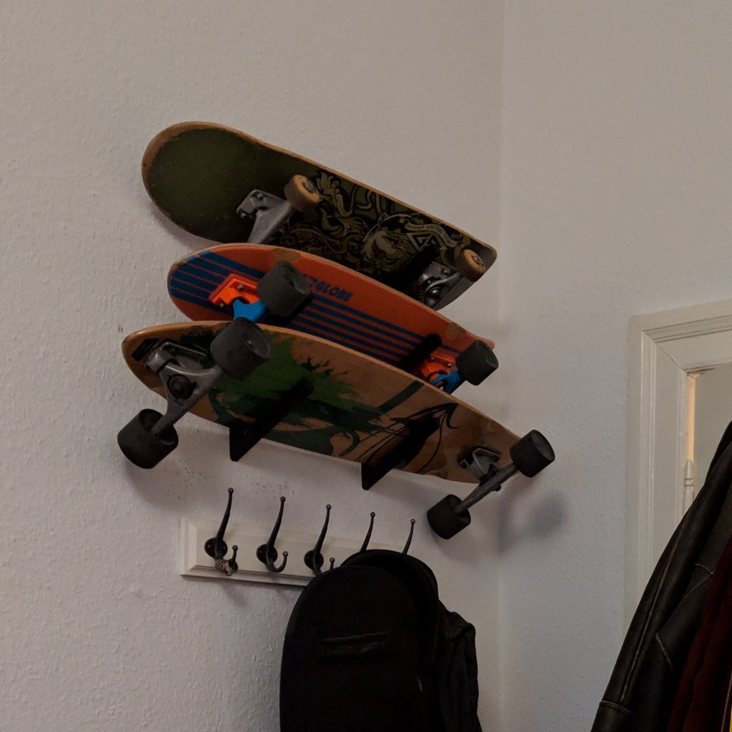 Nástěnný držák skateboardu je nástěnný držák, který pomáhá udržet váš skateboard v bezpečí a úhledně uložený na zdi. Jednoduše je přišroubujte ke zdi a vytvořte praktické a stylové úložné řešení pro vaše skateboardy.