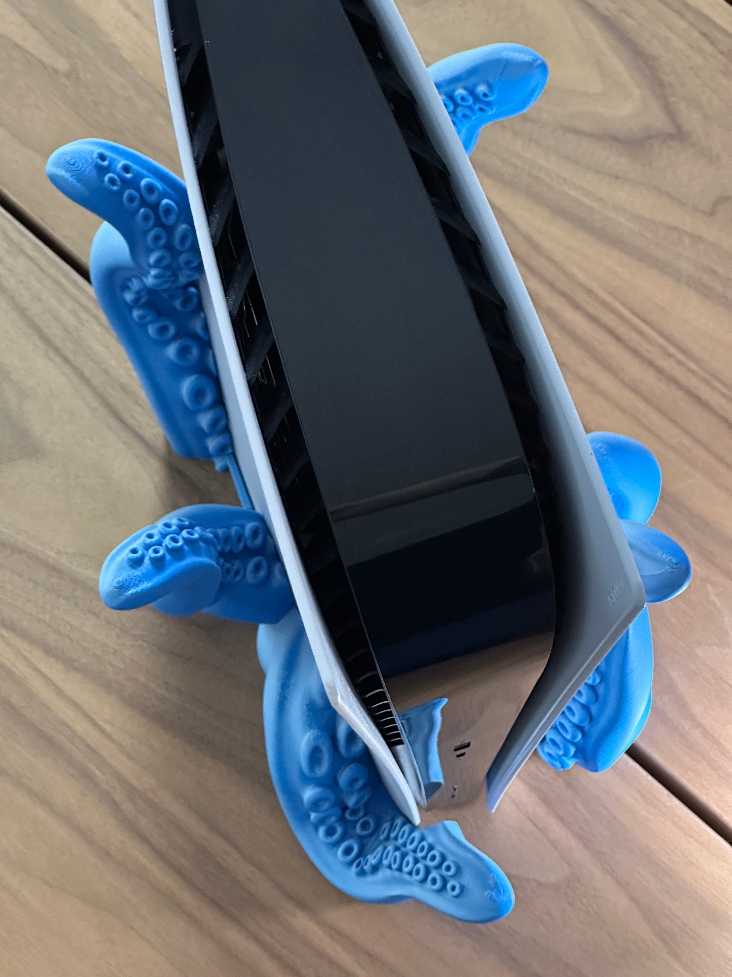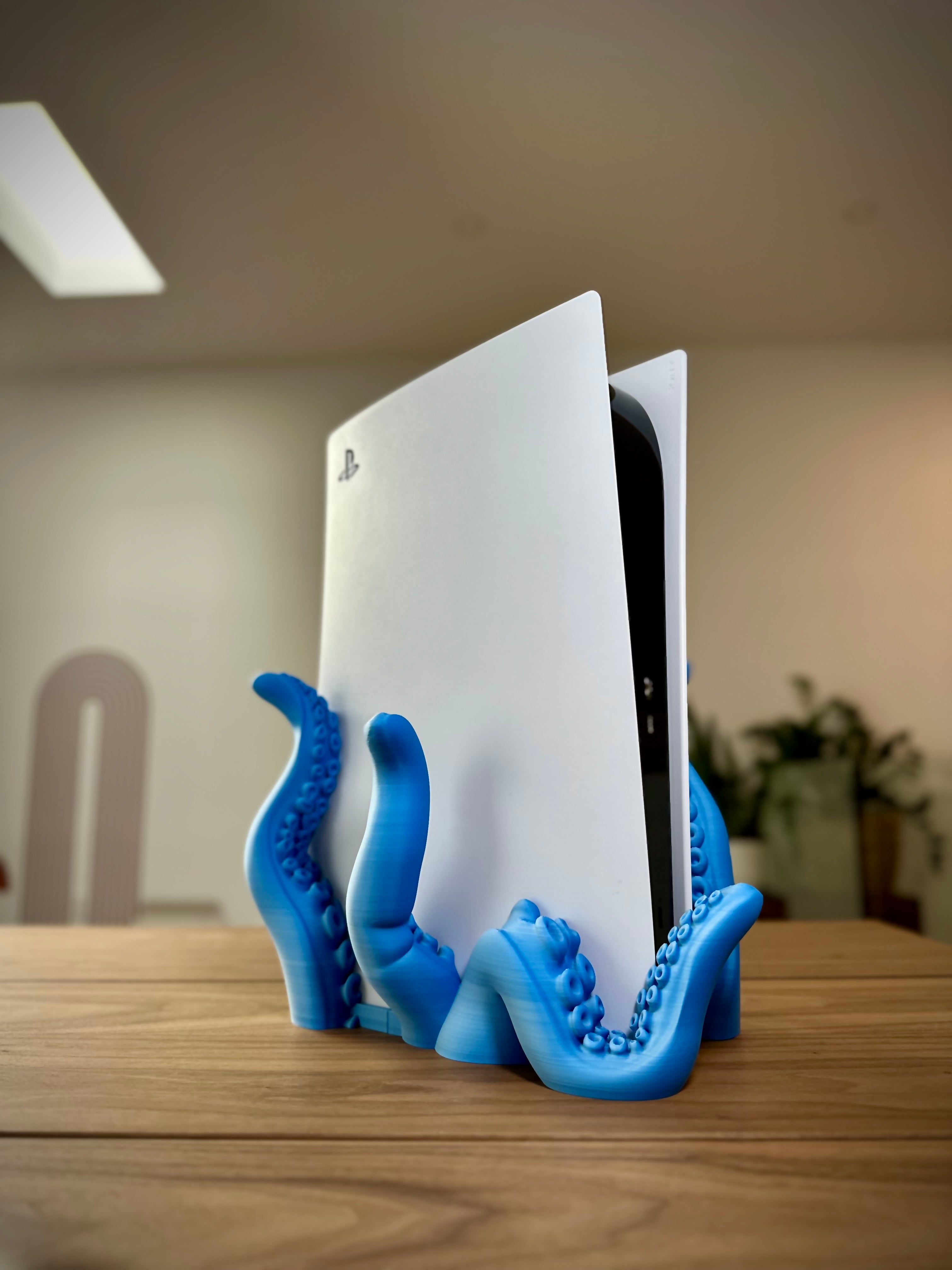 Tento stojan s chapadly je navržen speciálně pro Playstation 5 Disc Edition. Zajišťuje, že vaše konzole stojí stabilně ve svislé poloze. Stojan neblokuje ventilační otvory ani tlačítka, což zajišťuje optimální výkon při hraní her. Jedinečný design s chapadly dodá vašemu hernímu nastavení poutavý dekorativní prvek.
