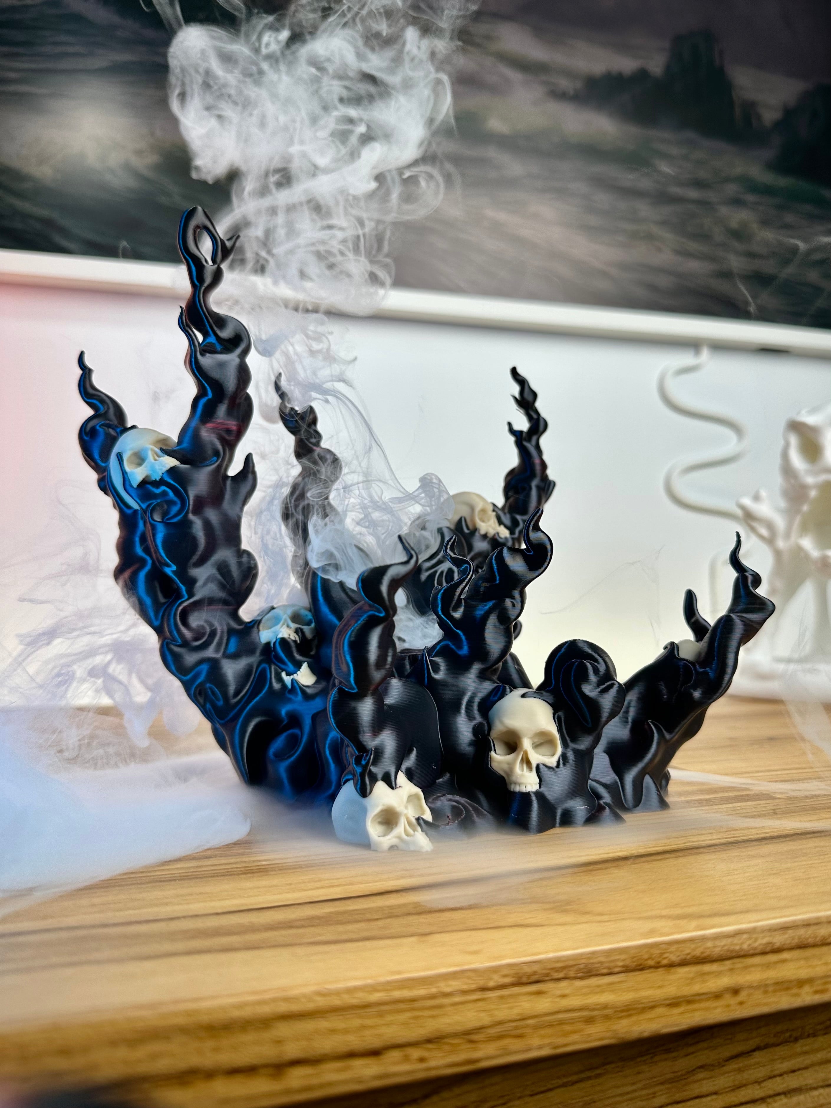 - Unikátní držák ve tvaru lebky s kouřovým, strašidelným designem.