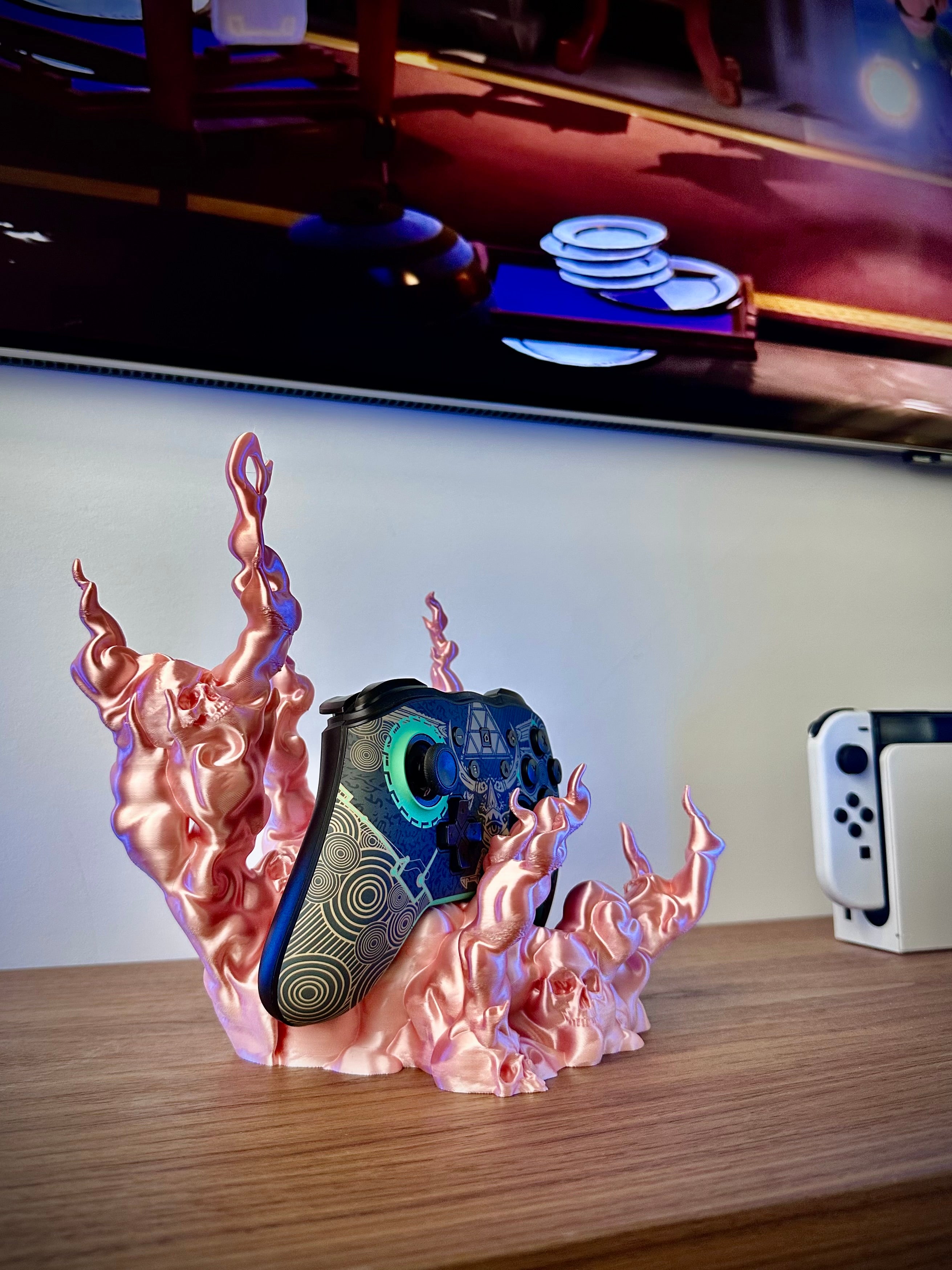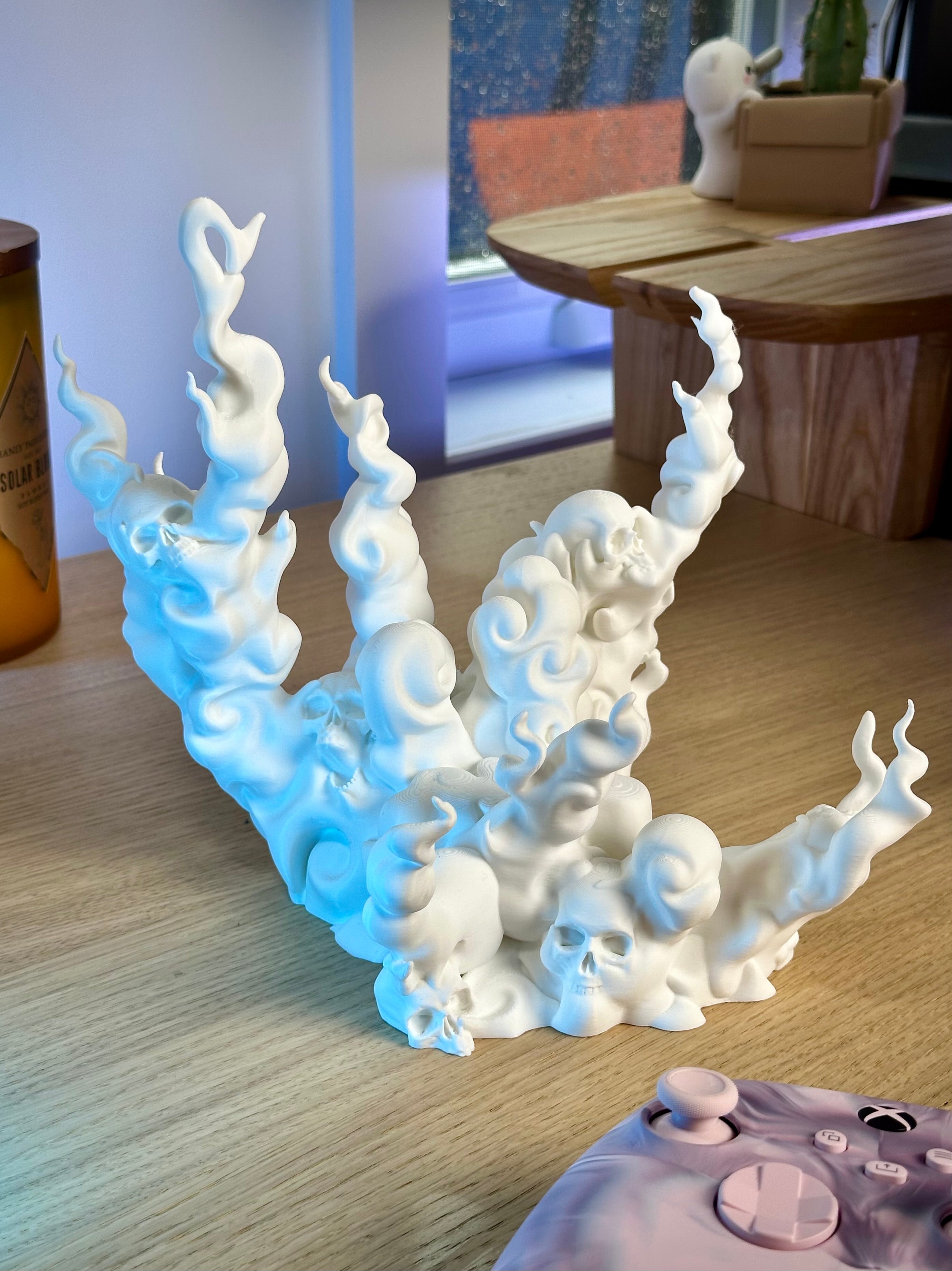 Strašidelný stojan na ovladač ve tvaru lebky s kouřem udrží váš herní ovladač bezpečně na svém místě. Je kompatibilní s ovladači PS5, PS4, Xbox a Switch. Dodá vašemu hernímu nastavení fantastický fantasy prvek.