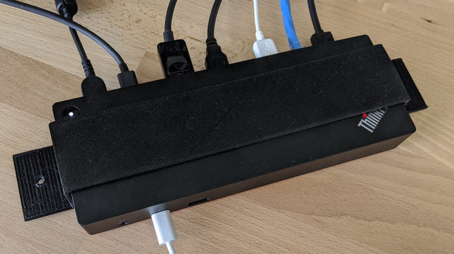 Toto je držák pro Lenovo ThinkPad Thunderbolt 3 Dock Gen 2, který vám umožní připevnit dok ThinkPad pod váš stůl. To pomáhá udržovat váš stůl uklizený a bez nepořádku.