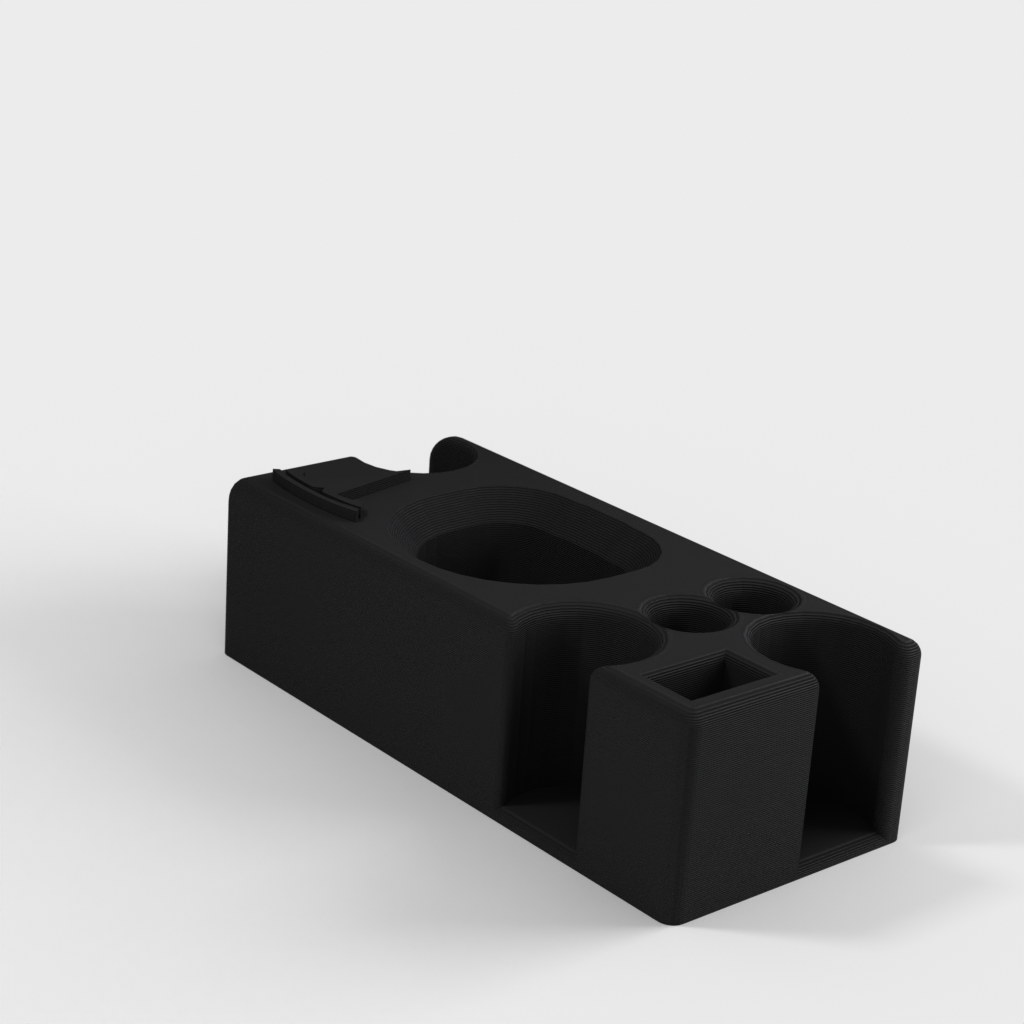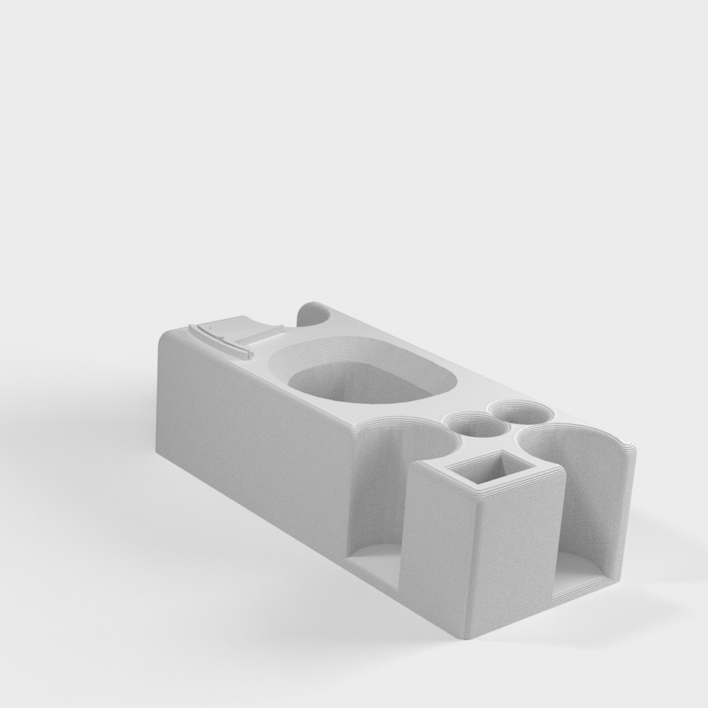 Tento organizér středové konzoly Tesla Model S je navržen tak, aby poskytoval jednoduché a rozšířené úložiště pro původní středovou konzolu staršího stylu (s analogovými porty USB). Zajišťuje, že vaše věci nebudou během jízdy létat kolem a vytváří prostor např. 2 hromádky čtvrťáků, 1 USB disk, 1 adaptér nabíječky, 1 baterka, 2 pera a další drobné předměty nahoře.