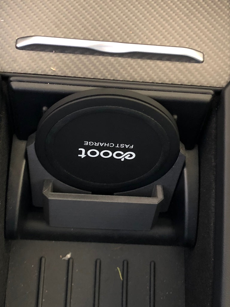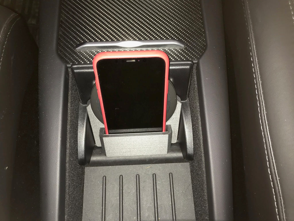 Středová konzolová základna Tesla Model-X pro iPhone a bezdrátovou nabíječku Qi