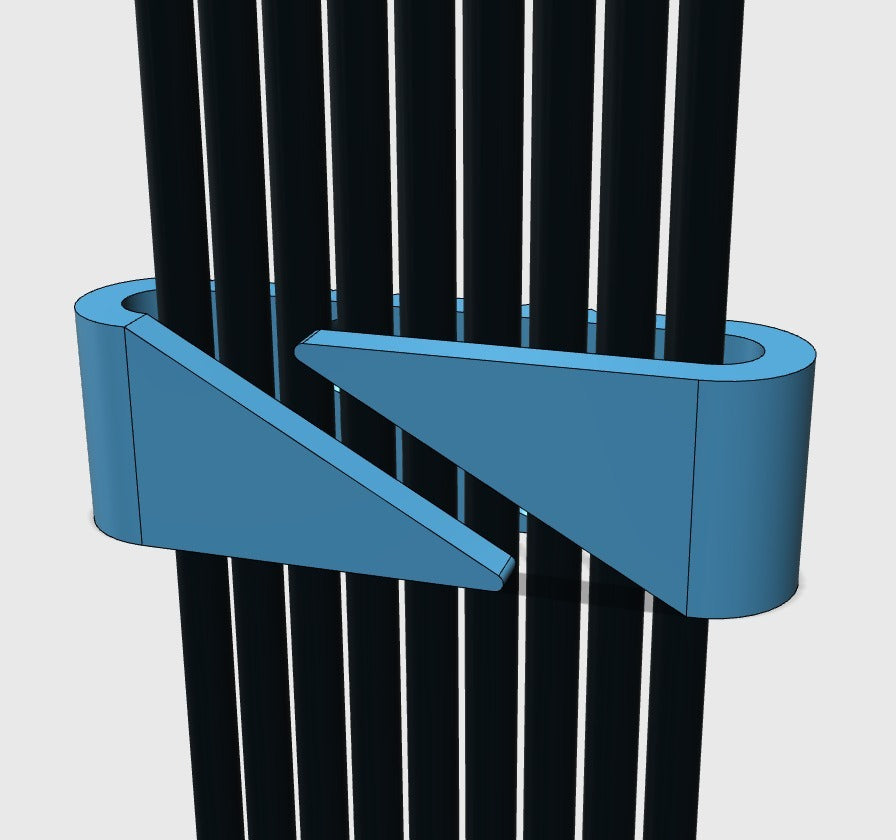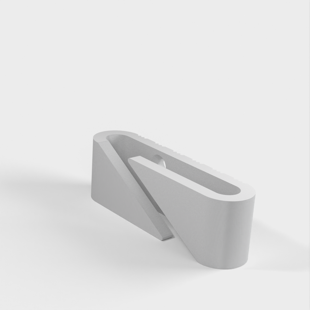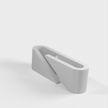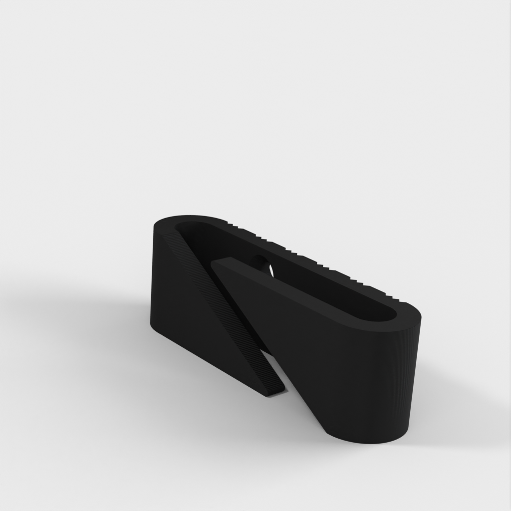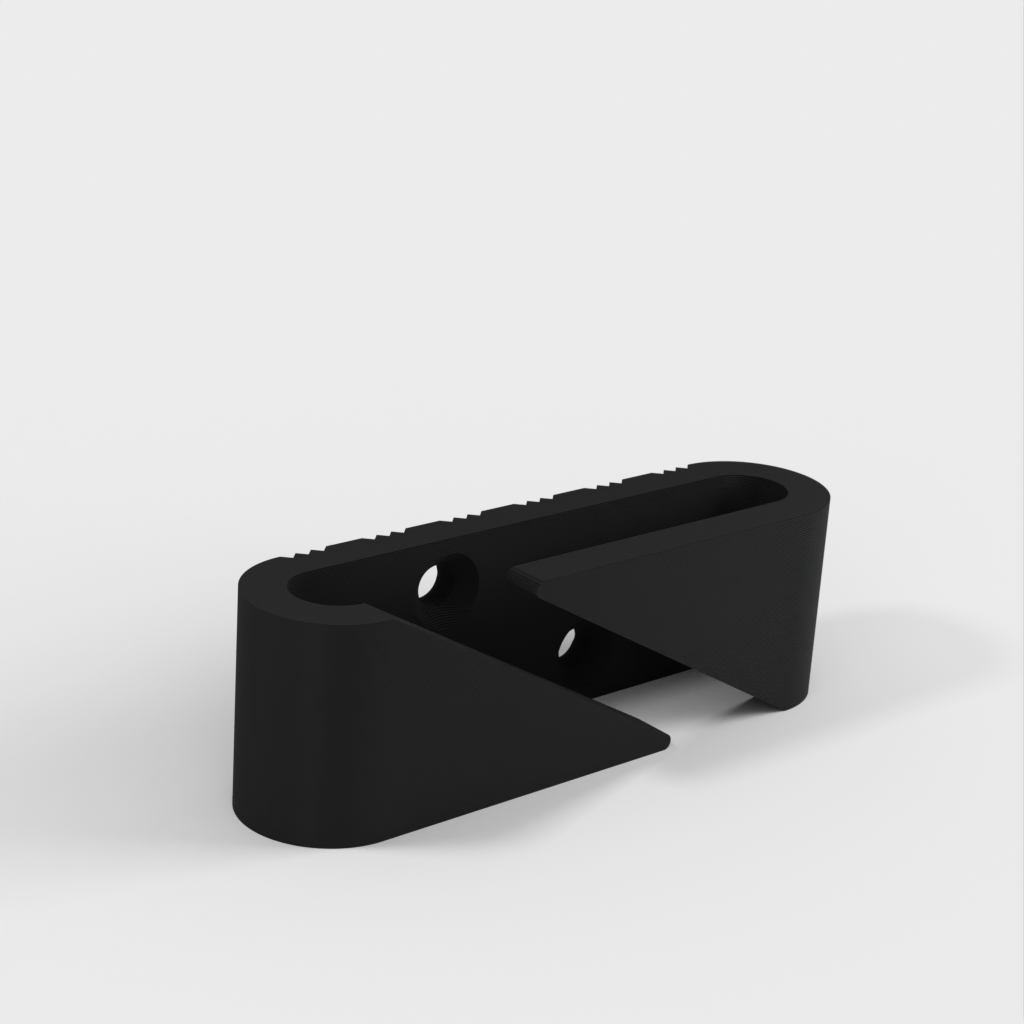 Držák kabelu, který lze připevnit k povrchu šrouby pomocí zahloubených otvorů nebo dokonce horkým lepidlem díky jeho drážkám.