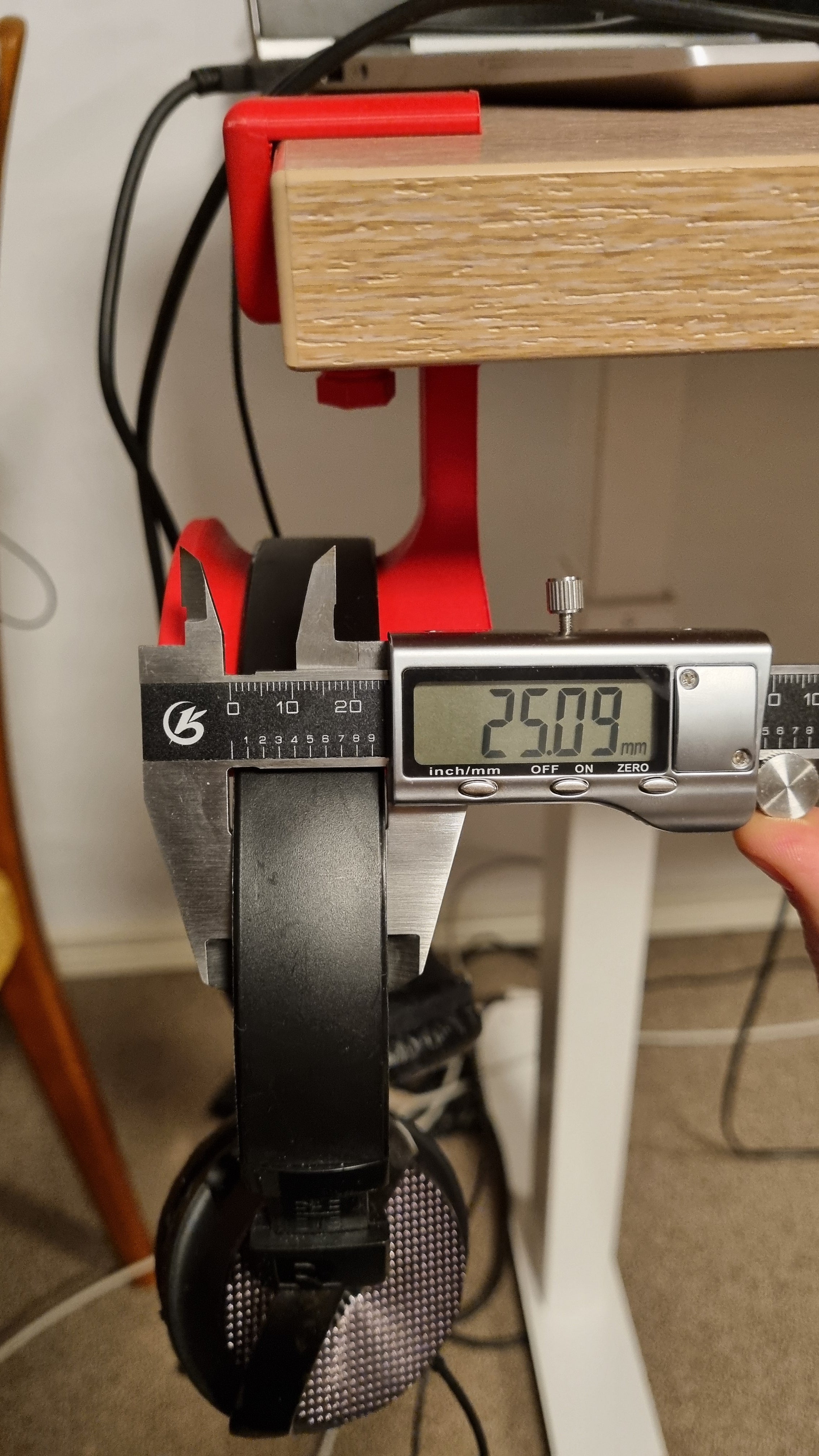 Kromě své primární funkce držáku sluchátek je toto praktické příslušenství vybaveno extra háčkem ve spodní části. Tento háček vám umožňuje zavěsit další drobnosti, jako jsou kabely, klíče nebo jiné osobní gadgets, což dále přispívá k přehlednému a efektivnímu uspořádání. Design je vhodný pro stoly o tloušťce až 25 mm a hodí se pro většinu standardních sluchátek o průměru kolem 150 mm a šířce 25 mm.