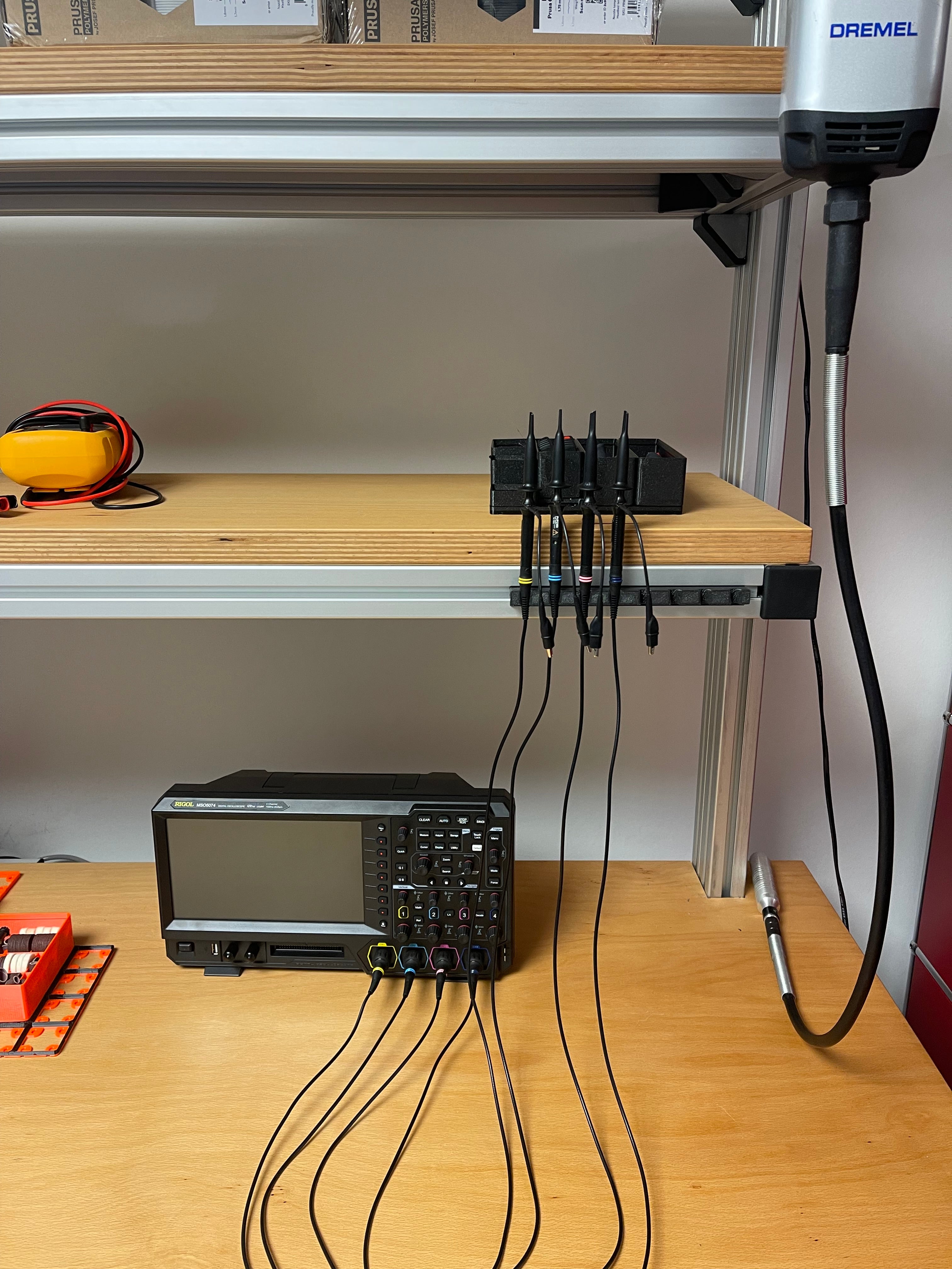 Tento chytrý závěs je navržen tak, aby vnesl pořádek do vaší dílny tím, že bude udržovat vaše sondy a kabely pod kontrolou. Je vytvořen speciálně tak, aby pasoval na 45x45 mm slot 10 B-type hliníkový profil, což poskytuje robustní a integrované řešení. S tímto závěsem můžete snadno uspořádat své nejdůležitější měřicí přístroje, jako jsou osciloskopové a multimetrové sondy, a také příslušné kabely. Parametrický design znamená, že závěs lze přizpůsobit různým typům sond, což zajišťuje optimální tvar a funkčnost. Výsledkem je efektivnější a efektivnější pracovní prostor, kde jsou vaše nástroje vždy na dosah a připraveny k použití.