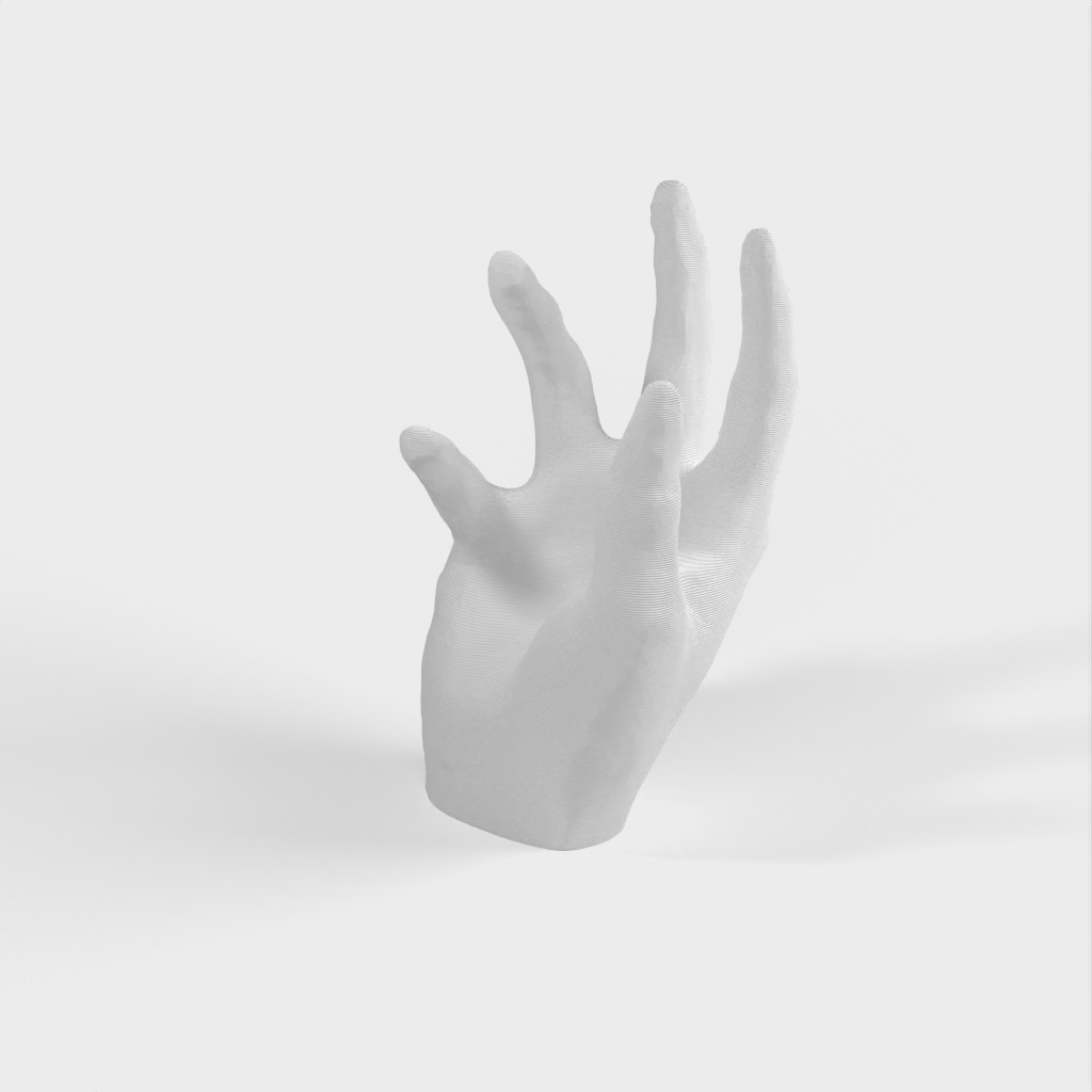 iPhone Hand je dokonalým řešením pro uložení smartphonu na stole. Tato 3D naskenovaná replika ruky je určena k uložení iPhonu nebo jiného smartphonu. Je vytvořena pro optimální tisk bez podpůrného materiálu.