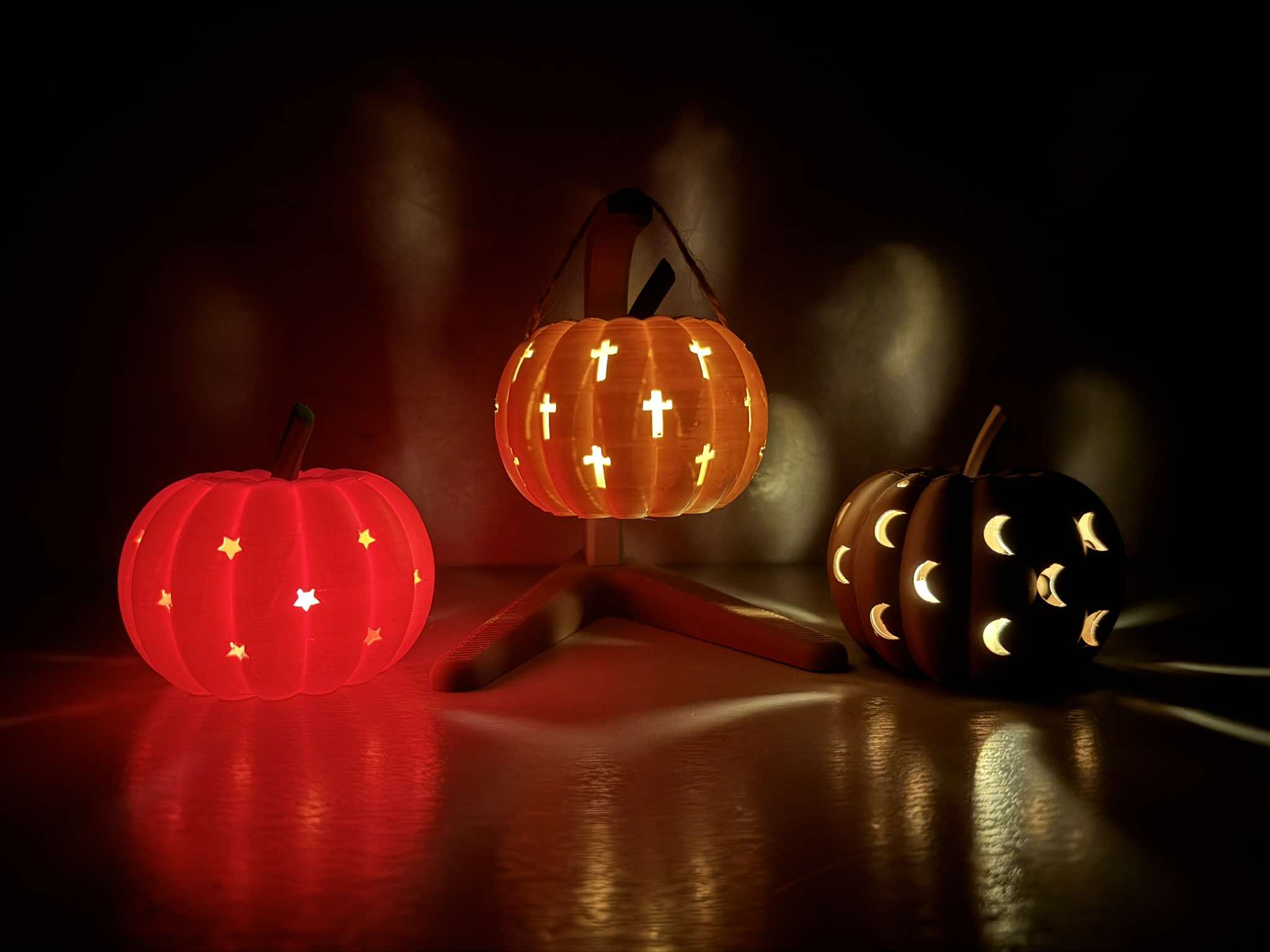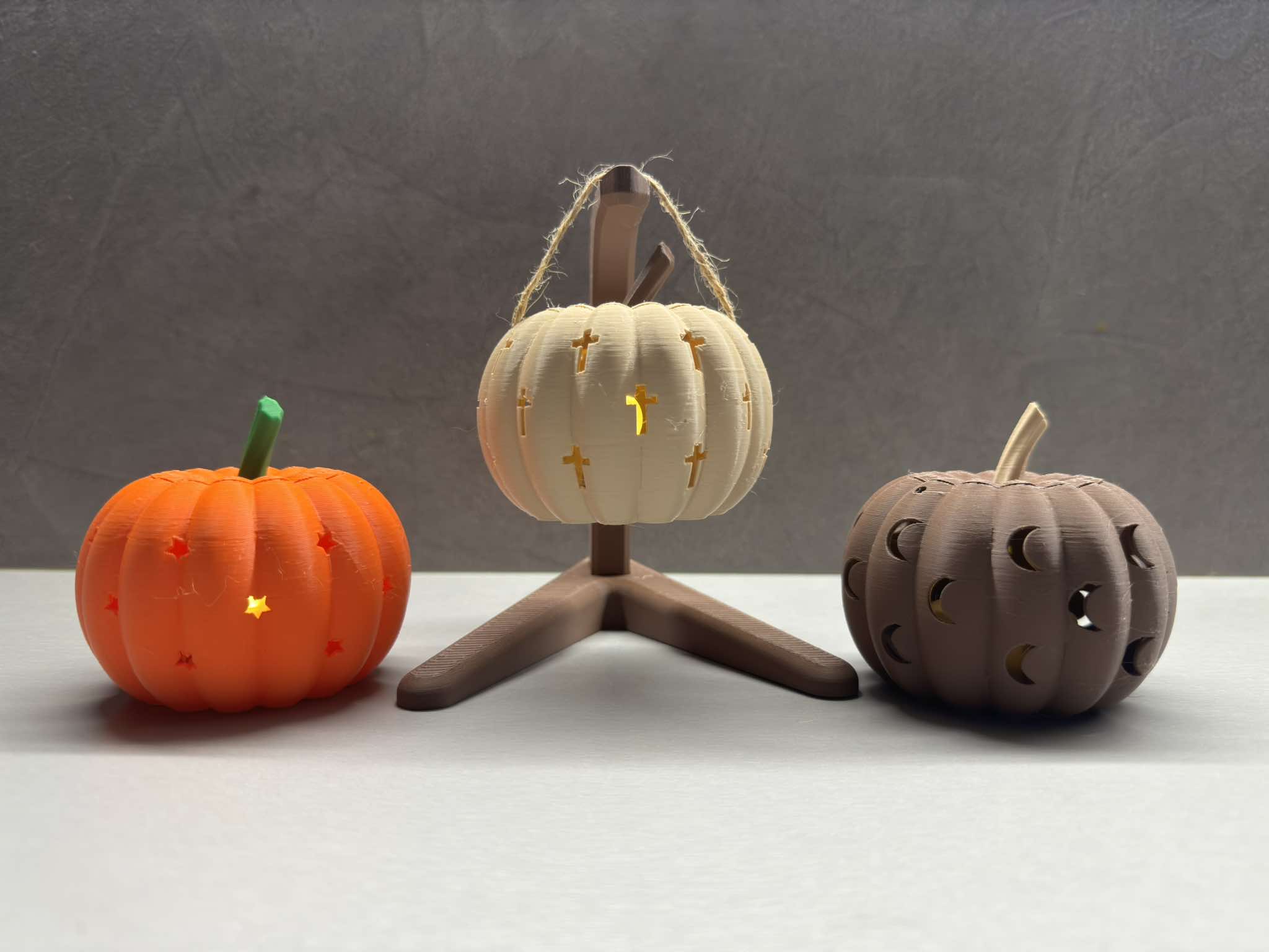 Dýně se snadno tisknou na 3D tiskárně a bez problémů můžete odstranit jakékoli podpůrné struktury díky dobře promyšlenému designu. Jsou dostupné v několika barvách a materiálech, jako jsou béžová, hnědá, zelená a oranžová PLA a také zelená PETG-HF, což vám umožňuje přizpůsobit si svou dekoraci podle vašeho stylu.