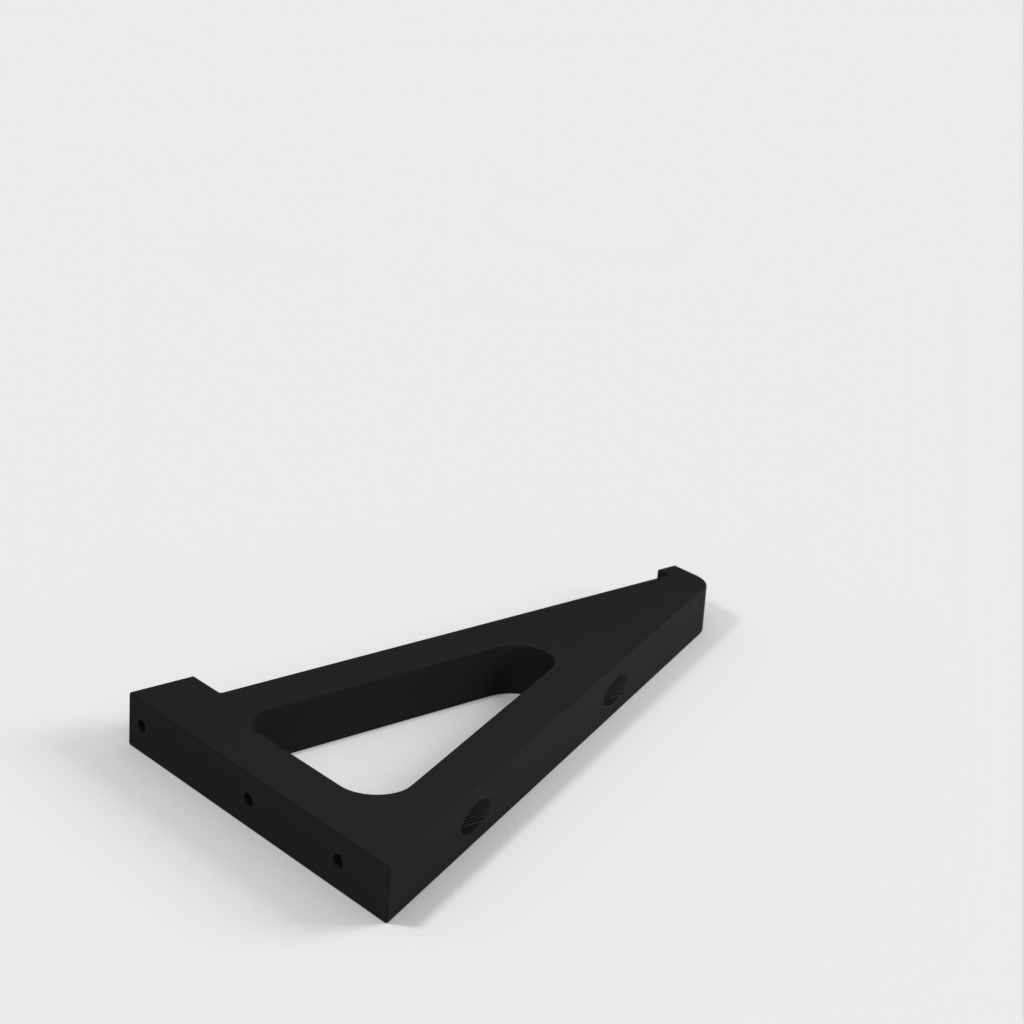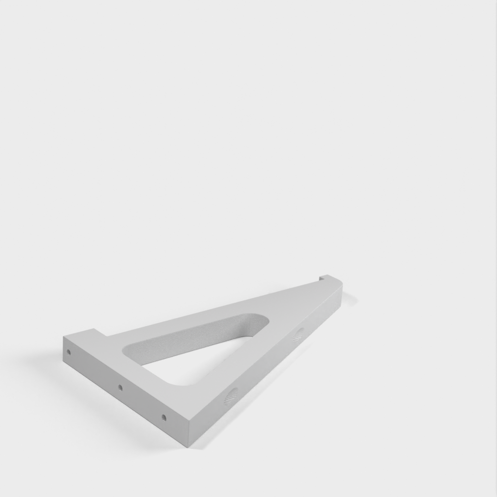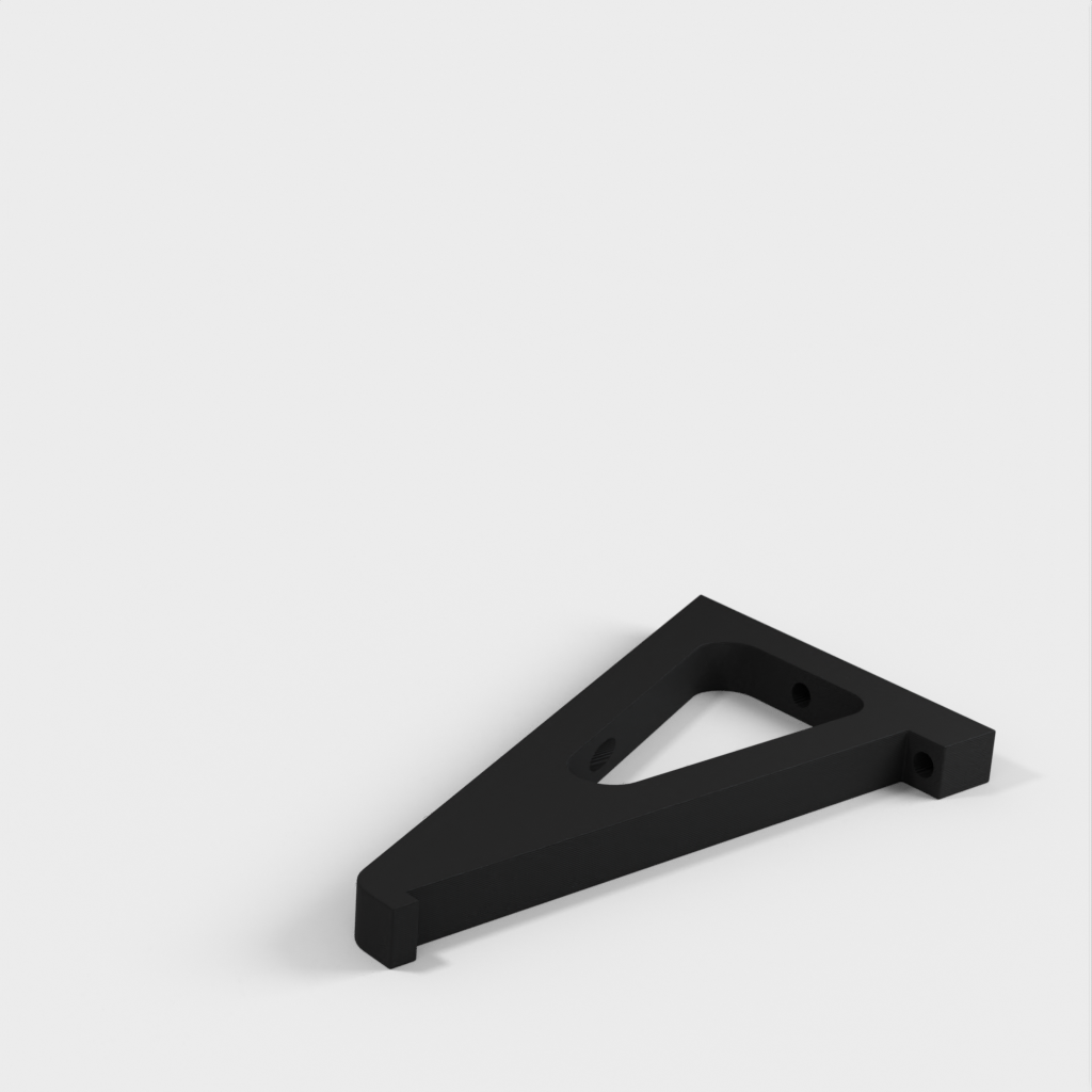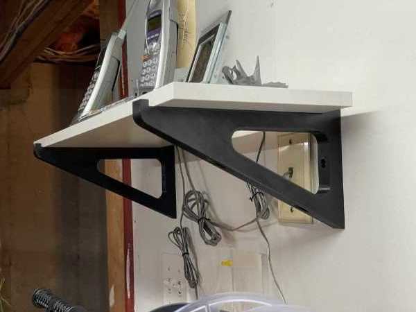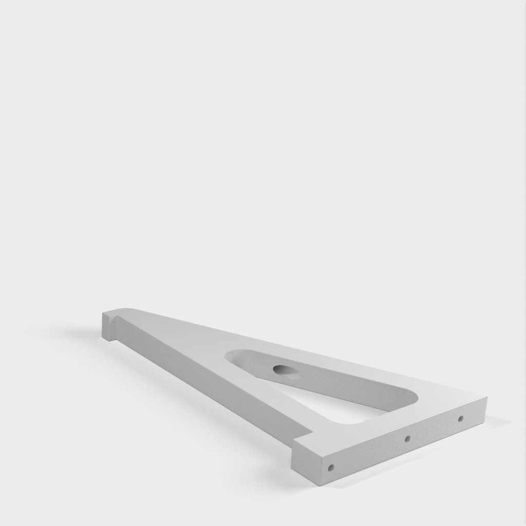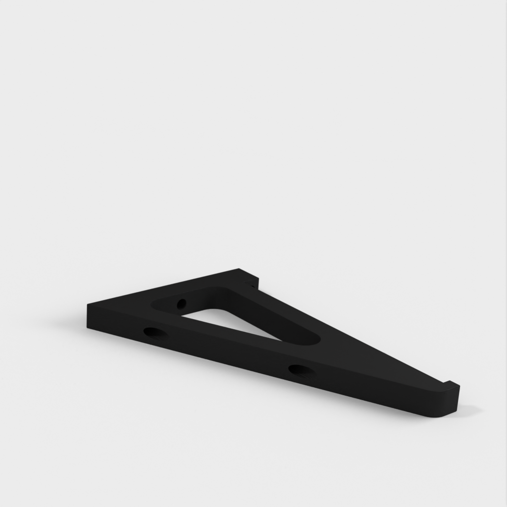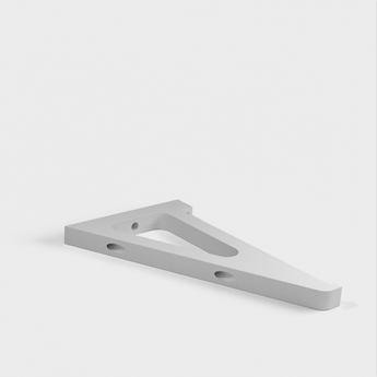Tento držák police je určen pro standardní 8palcovou polici, kterou najdete ve většině obchodů pro kutily. Mezi policí a stěnou ponechává mezeru pro vedení kabeláže. Držák police se připevňuje ke stěně pomocí kotev do sádrokartonu, které jsou zobrazeny na obrázku. Na každém držáku jsou tři místa.