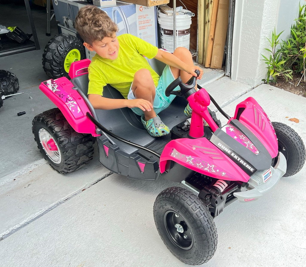 Tento adaptér předního kola je navržen tak, aby vylepšil váš Powerwheels Dune Racer nebo Dune Racer Extreme tím, že umožní montáž specifických 10" nebo 13" kol od Harbor Freight. Adaptér zajišťuje těsné a stabilní uchycení mezi přední nápravou vozidla a ložiskem kola, což přispívá k robustnějšímu a odolnějšímu zážitku z jízdy vašeho elektromobilu.