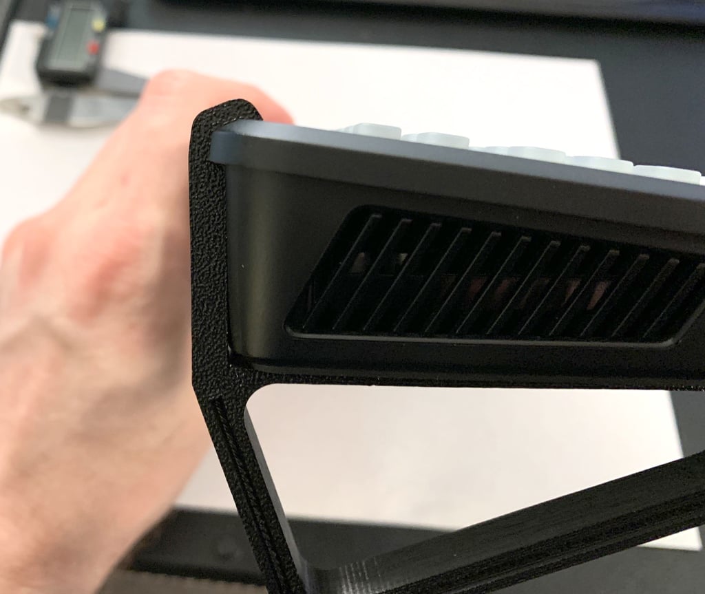 Tento stojan Blackmagic ATEM Mini/Mini Pro zvedá přepínač z povrchu pro lepší hospodaření s teplem. Když ATEM Mini-Pro běží nepřetržitě, změna úhlu a výšky stojanu přispívá k výraznému zlepšení chlazení. Tato verze upravuje a vyrovnává horní „klíčové dírky“ a poskytuje dostatečný prostor pod ATEM, aby držáky mohly klouzat, i když jsou připevněny montážní podložky.