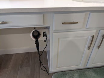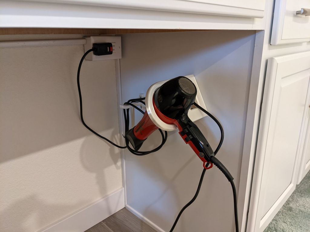 Tento praktický držák na vysoušeč vlasů je navržen pro montáž na bok koupelnové skříňky. Nabízí prostorově úsporné řešení, které pomáhá udržet vaši koupelnu uspořádanou a bez nepořádku, protože váš vysoušeč vlasů má své pevné místo. Díky integrovanému kabelovému háku slouží držák také jako držák kabelu, který zajišťuje, že napájecí kabel po použití úhledně zapadne na místo a minimalizuje zamotání. To zajišťuje snadné a přehledné skladování, takže váš vysoušeč vlasů je vždy na dosah, když ho potřebujete.