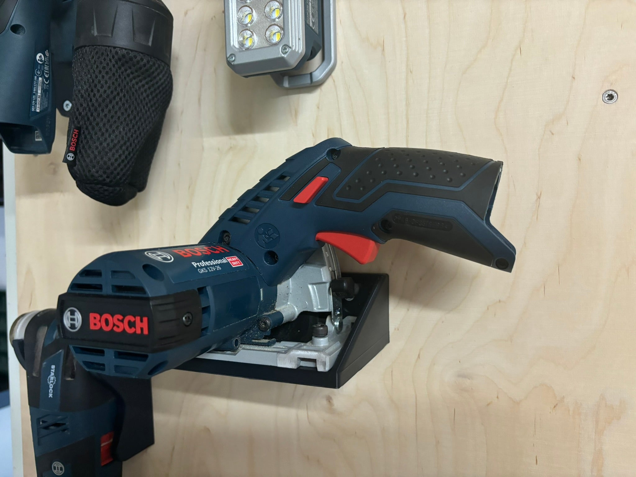 Udržujte své nářadí Bosch 12V v pořádku s tímto praktickým nástěnným držákem, navrženým speciálně pro udržení vašich akumulátorů a elektrického nářadí organizovaných a snadno přístupných. Design držáku umožňuje umístit až čtyři akumulátory, přičemž po levé straně je místo pro dva 3.0Ah akumulátory a po pravé straně pro dva 4.0Ah nebo 6.0Ah akumulátory. Dále je kompatibilní s modely GSR 12V-35 a GSR 12V-15, stejně jako s několika dalšími nástroji jako GKS 12V-26, GOP 12V-28 a GEX 12V-125. Tento držák není jen funkční, ale také přispívá k tomu, aby vaše pracovní místo zůstalo čisté.