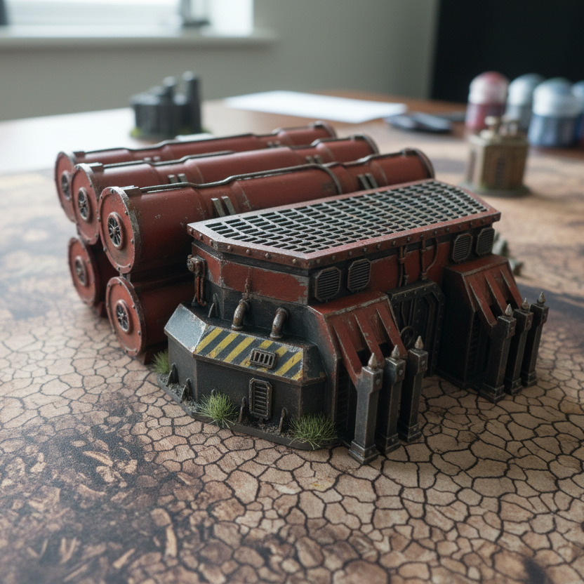 Tento terén vytváří opotřebovanou, chemicky zasaženou oblast, ideální jako ruiny nebo roztroušený terén ve vašich wargamingových scénářích. Perfektní doplněk k bitvám Warhammer 40k, kde může sloužit jako strategická pozice nebo budova, která obohatí atmosféru hry.