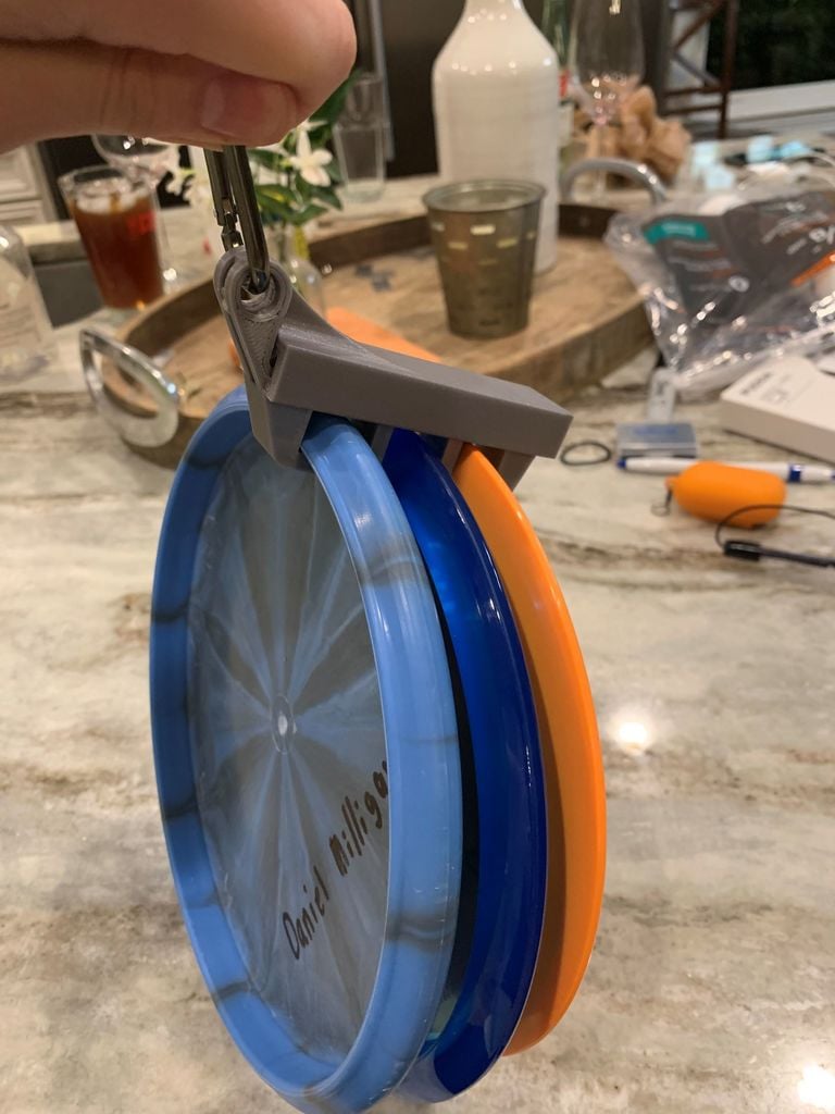 Držák je kompatibilní s puttery, středy a disky/frisbee na dlouhé vzdálenosti. Má 10mm otvor, který lze připevnit k tašce pomocí karabiny a pojme disky s velikostí okraje/hrany 0-21mm, 0-15,5mm a 0-12mm. Udržujte své golfové disky nebo frisbee uspořádané a snadno dostupné během golfového kola s tímto praktickým držákem.