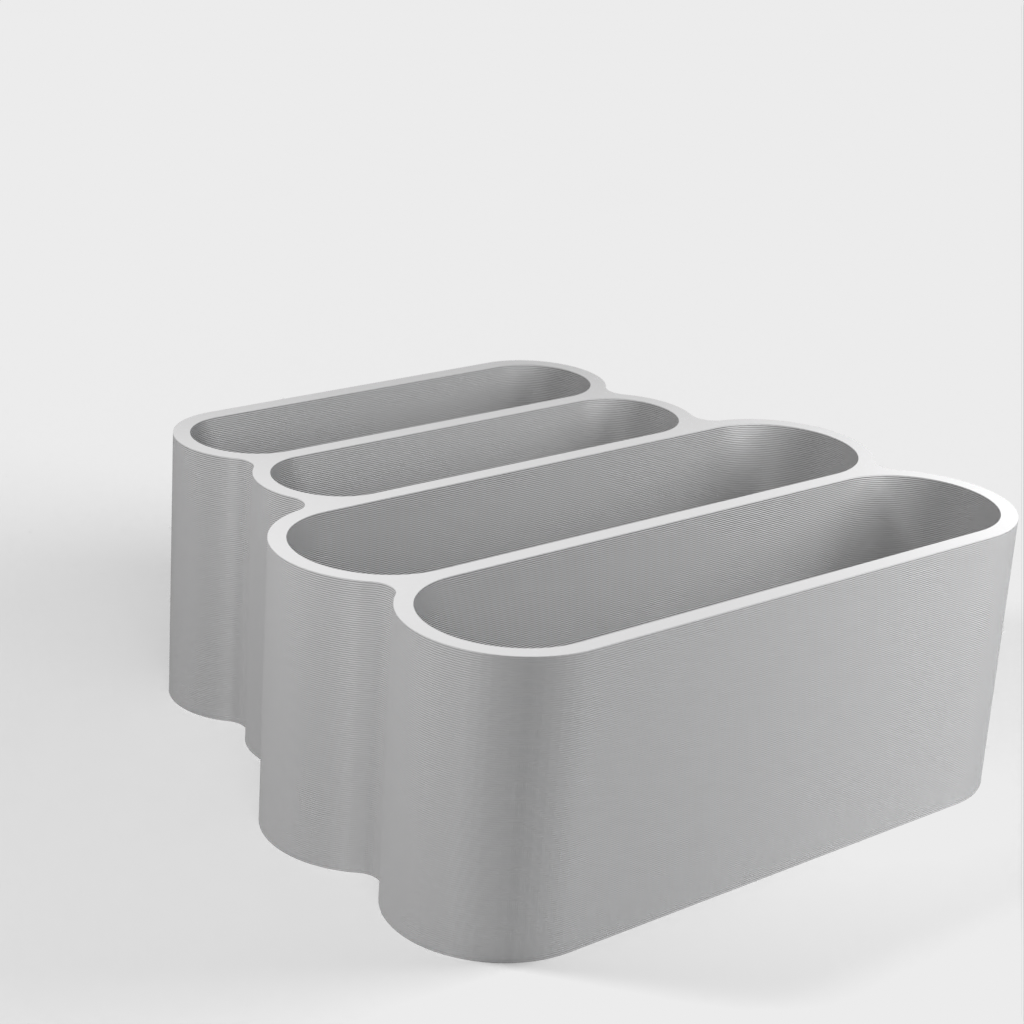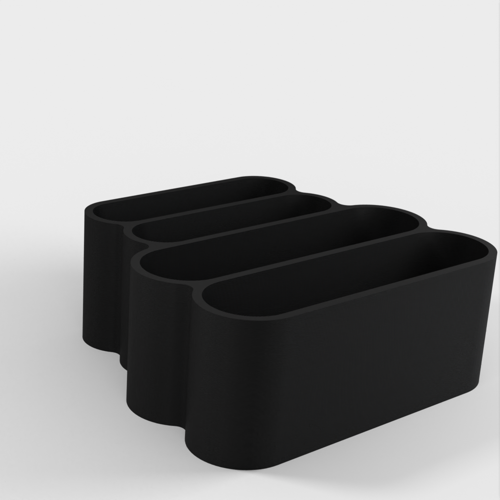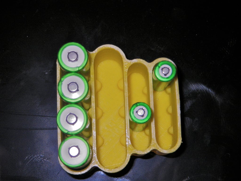 S tímto držákem baterií udržíte baterie na svém místě. Pojme až 8 baterií AA a 8 baterií AAA. A verze 2 tohoto držáku baterií má v základní desce malé otvory, jinak je totožný s původní verzí.