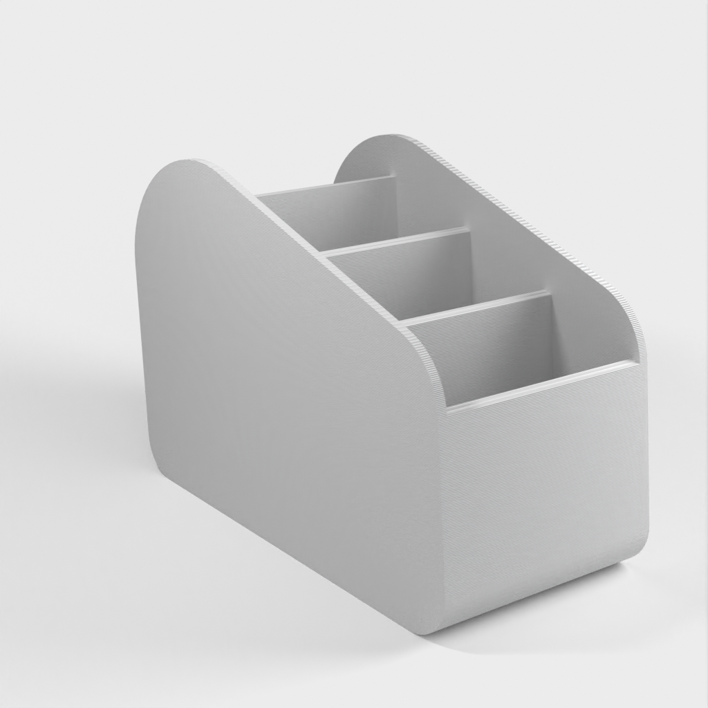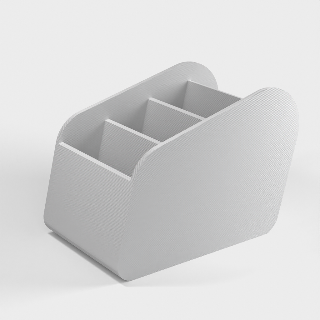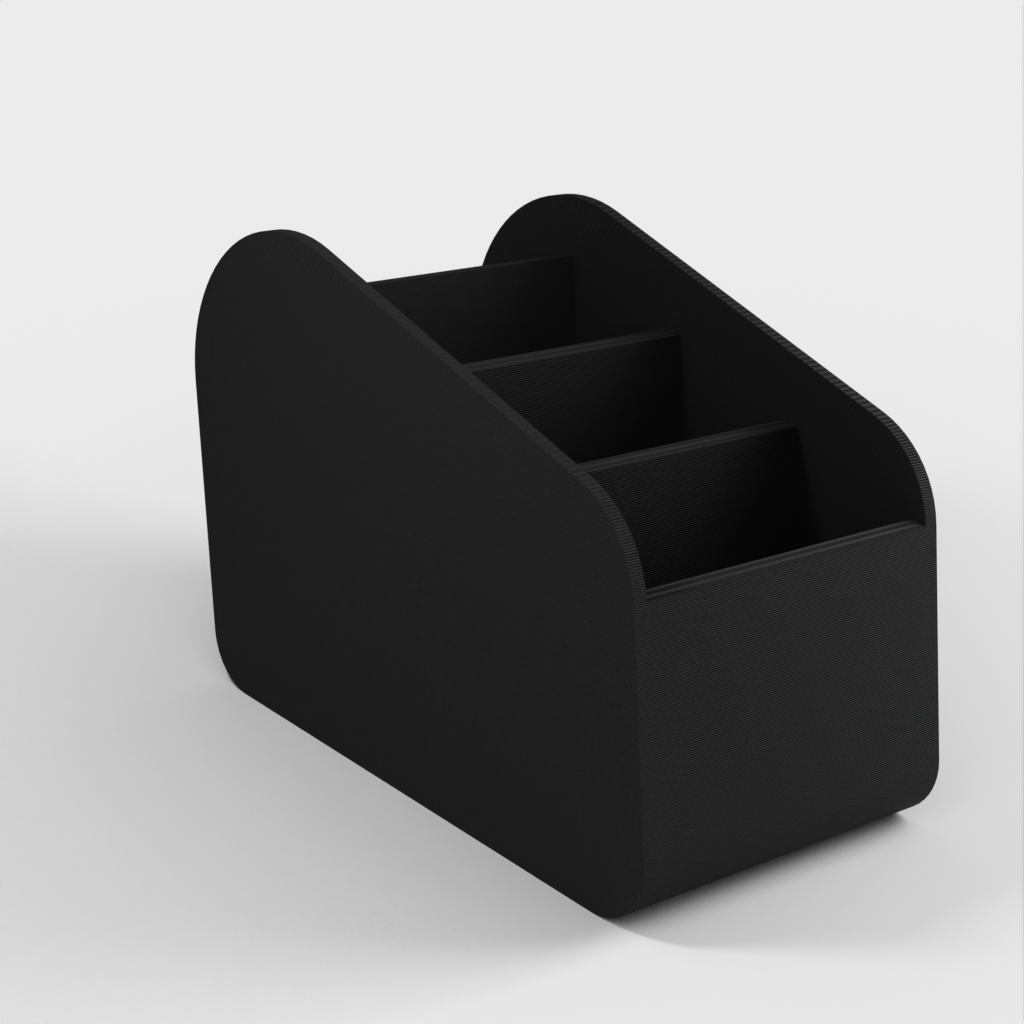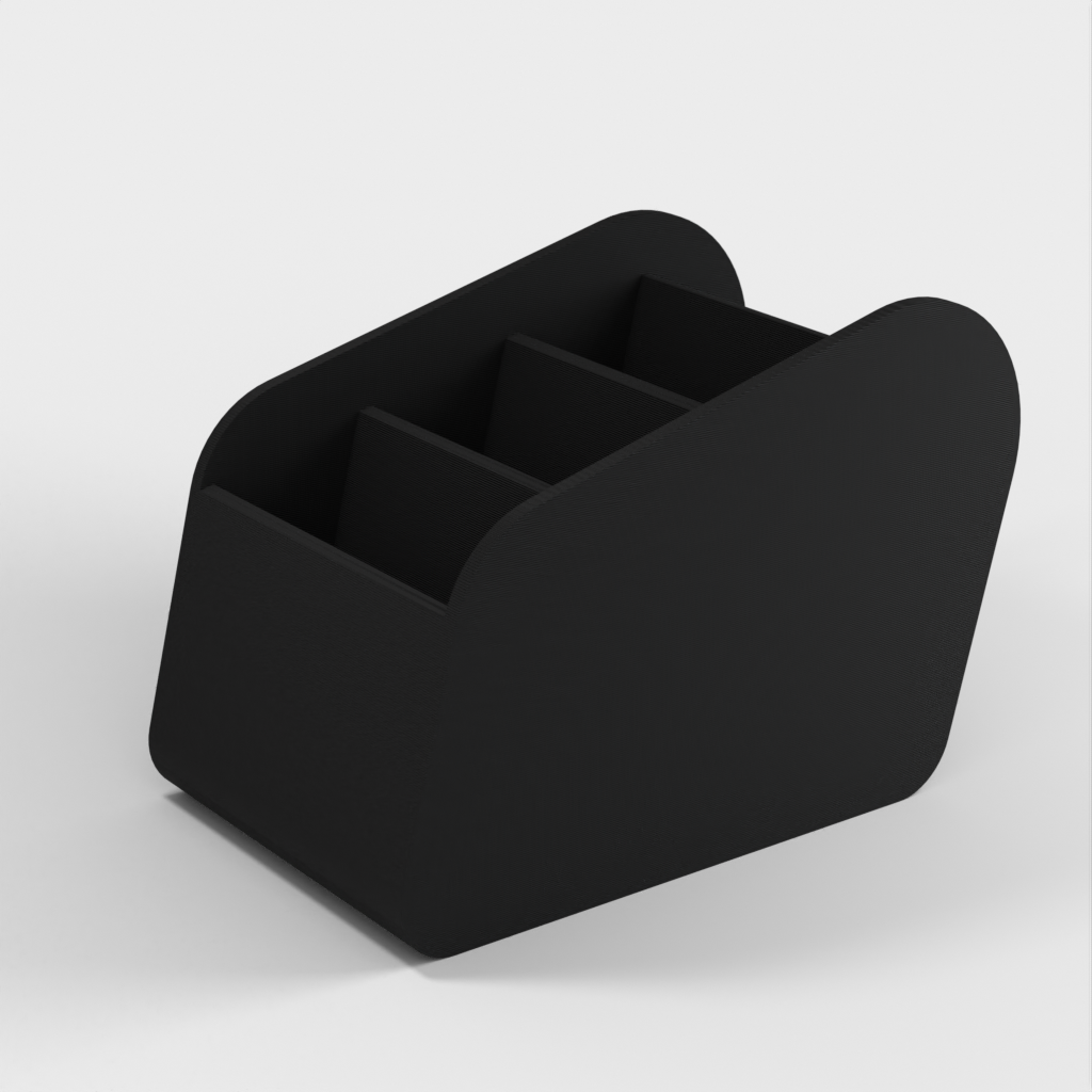 Jediný držák dálkových ovladačů, díky kterému budete mít dálkové ovladače uspořádané na jednom místě. Má několik přihrádek, abyste snadno našli ten správný dálkový ovladač, který potřebujete.