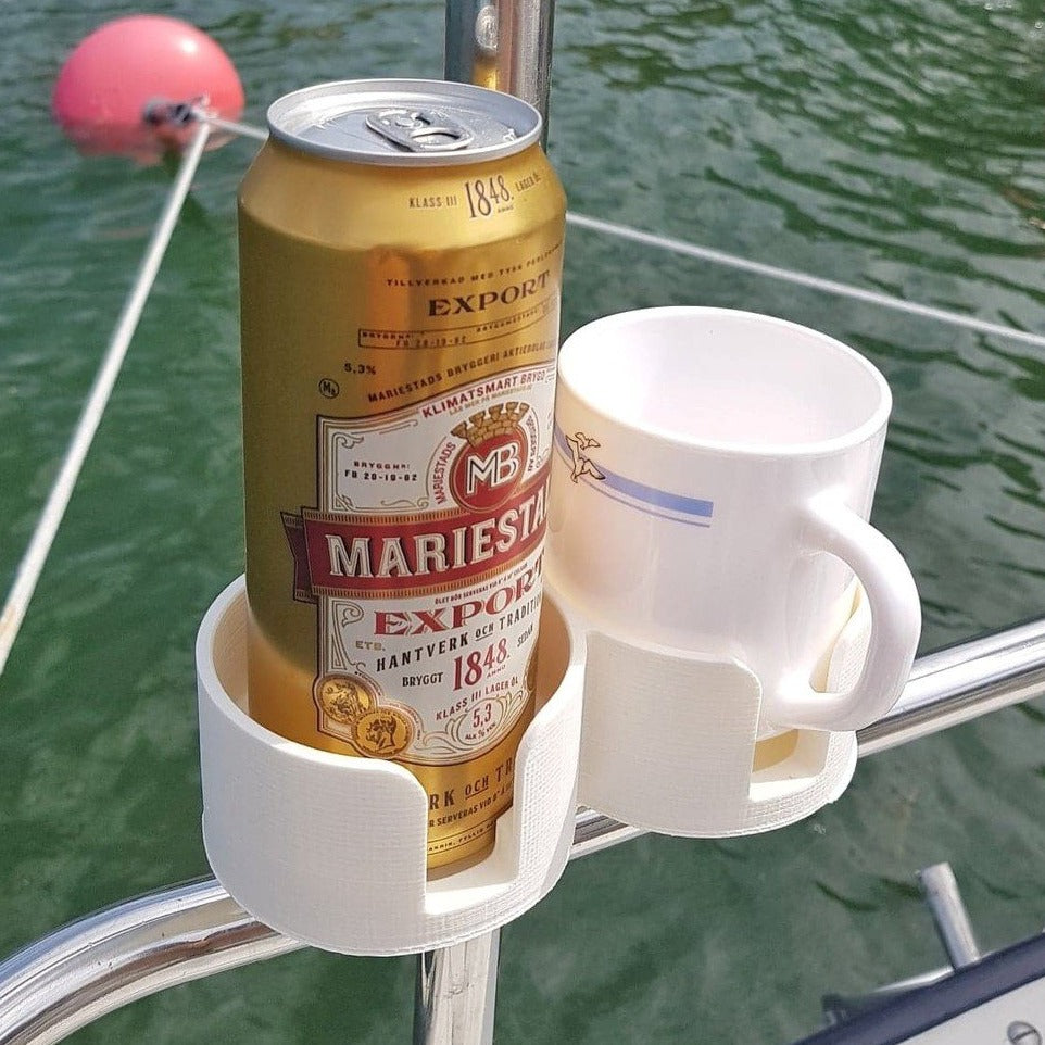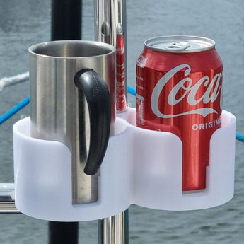 Jedná se o dvojitý držák na šálky, hrnky nebo plechovky pro 25 mm mořské lišty na lodích. Vnitřní část je rozdělena na dvě části, aby se do ní vešly jak hrnky, tak plechovky.