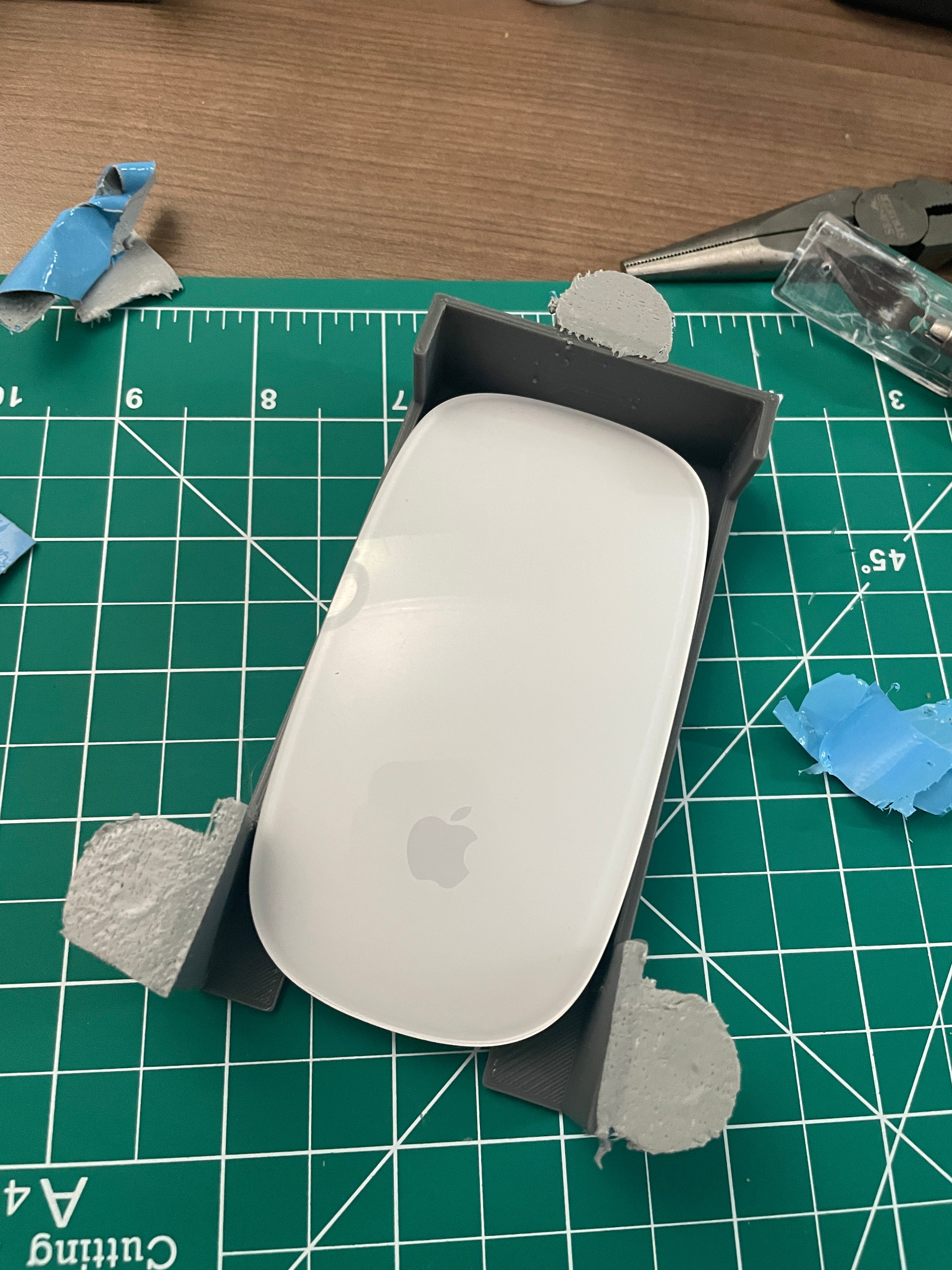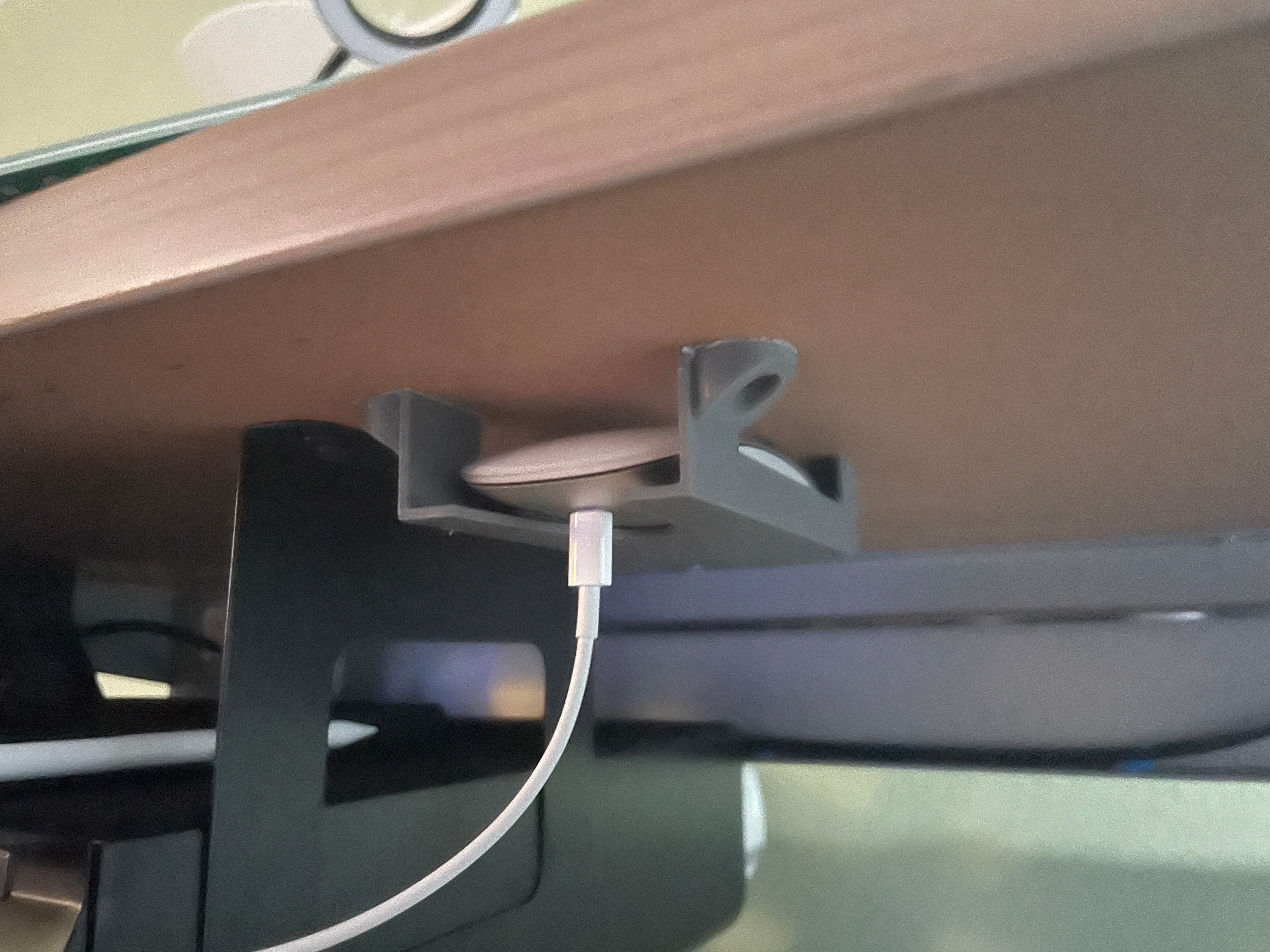 Držák Magic Mouse pod stůl představuje praktické a organizované řešení pro uložení myši Magic Mouse. Snadno se upevňuje pod stůl pomocí oboustranné pásky nebo šroubů. Konstrukce obsahuje otvor ve spodní části, který umožňuje nabíjení myši, když je v držáku, a zajišťuje, že je myš vždy připravena k použití.