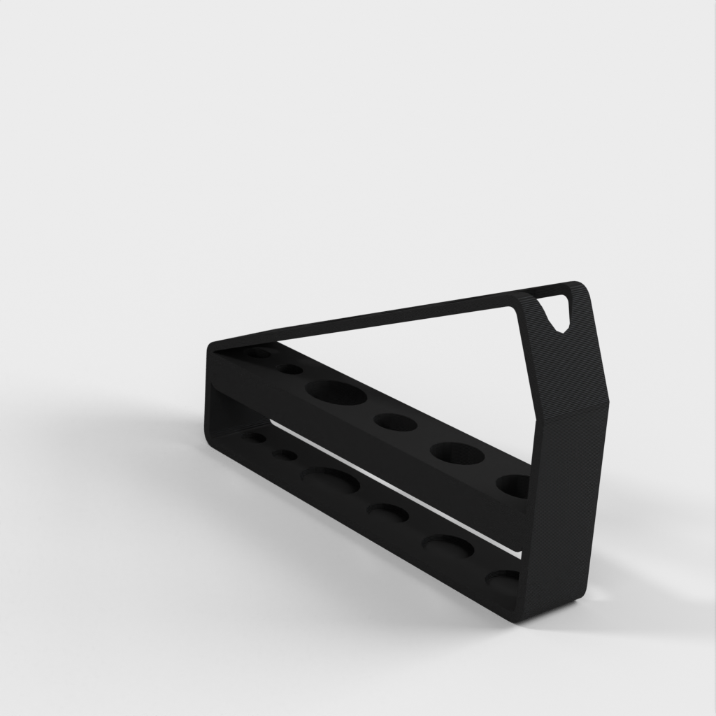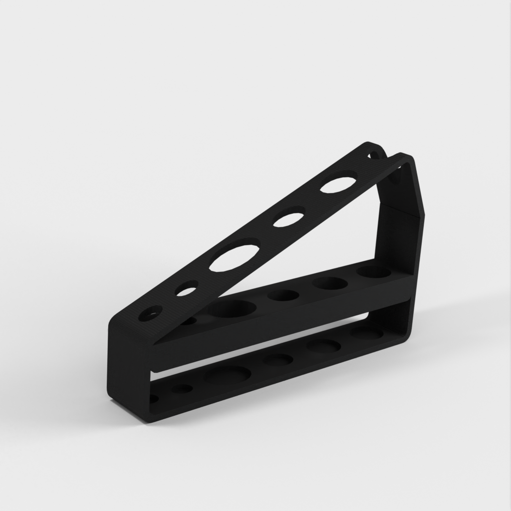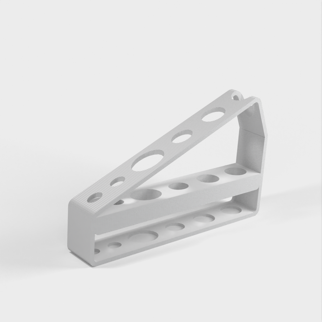 Jednoduchý držák na 3 běžné zubní kartáčky Curaprox, 2 malé kartáčky a 1 dětský kartáček. Ve spodní části je přilepený pro větší stabilitu. Udrží vaši koupelnu uspořádanou a zubní kartáčky na jednom místě.
