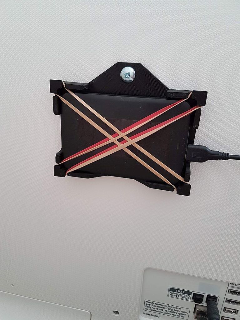 Tento praktický držák pevného disku je navržen tak, aby poskytoval optimální řešení pro uložení externího pevného disku ve spojení s televizí nebo monitorem počítače. Využitím nevyužitých montážních bodů VESA na zadní straně monitoru můžete snadno namontovat pevný disk diskrétně a mimo dohled. To je ideální, pokud váš televizor používá pevný disk pro funkce, jako je nahrávání živého televizního vysílání, ukládání do vyrovnávací paměti nebo pozastavení. Držák zajišťuje pevný disk pomocí standardních gumiček, které poskytují flexibilní a bezpečné upevnění. Je speciálně navržen pro pevné disky o rozměrech přibližně 119 x 79 x 15 mm, jako jsou některé modely Toshiba. Výsledkem je uspořádané a uklizené zábavní zařízení bez volných kabelů nebo zařízení, která se povalují za vaším vybavením.