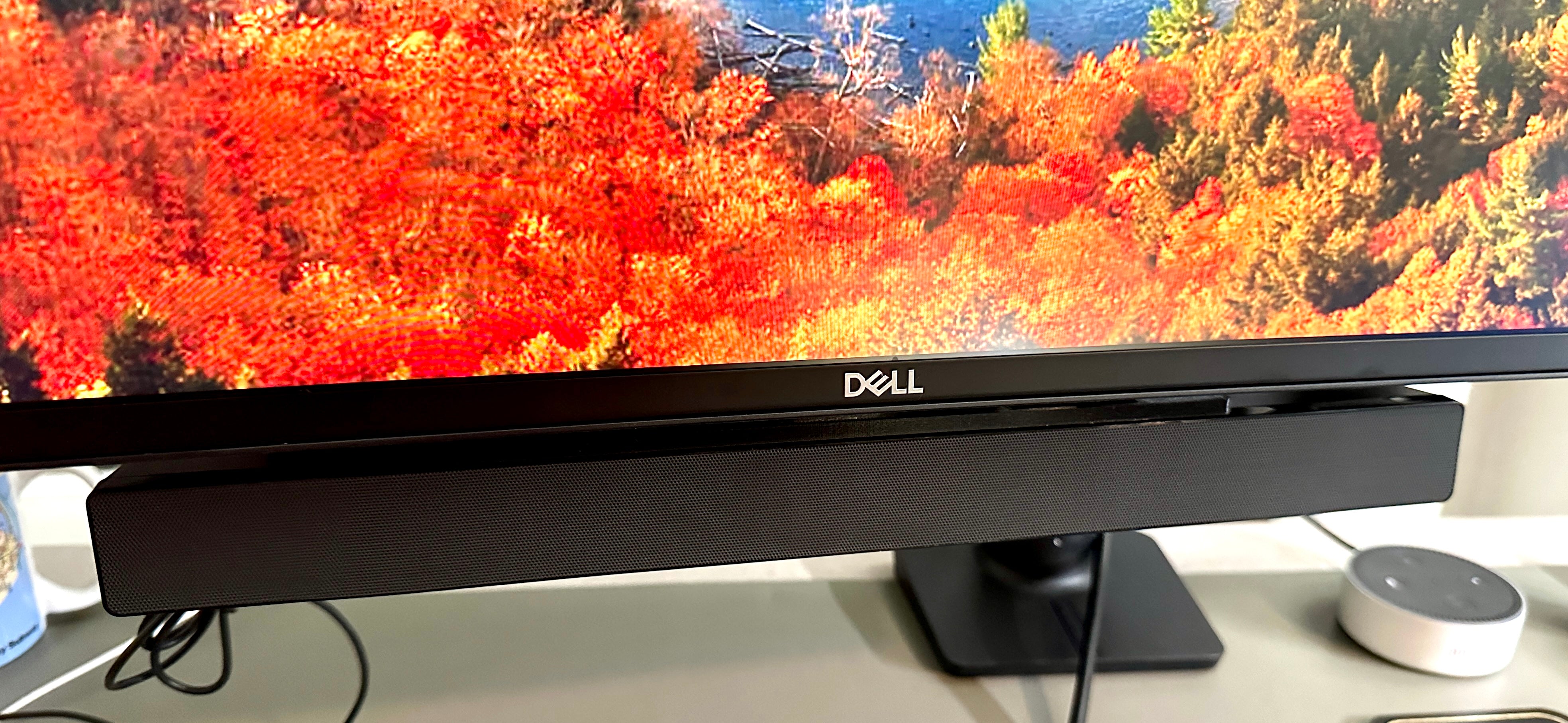 - Optimalizované umístění soundbaru Dell AC511 pod monitorem.