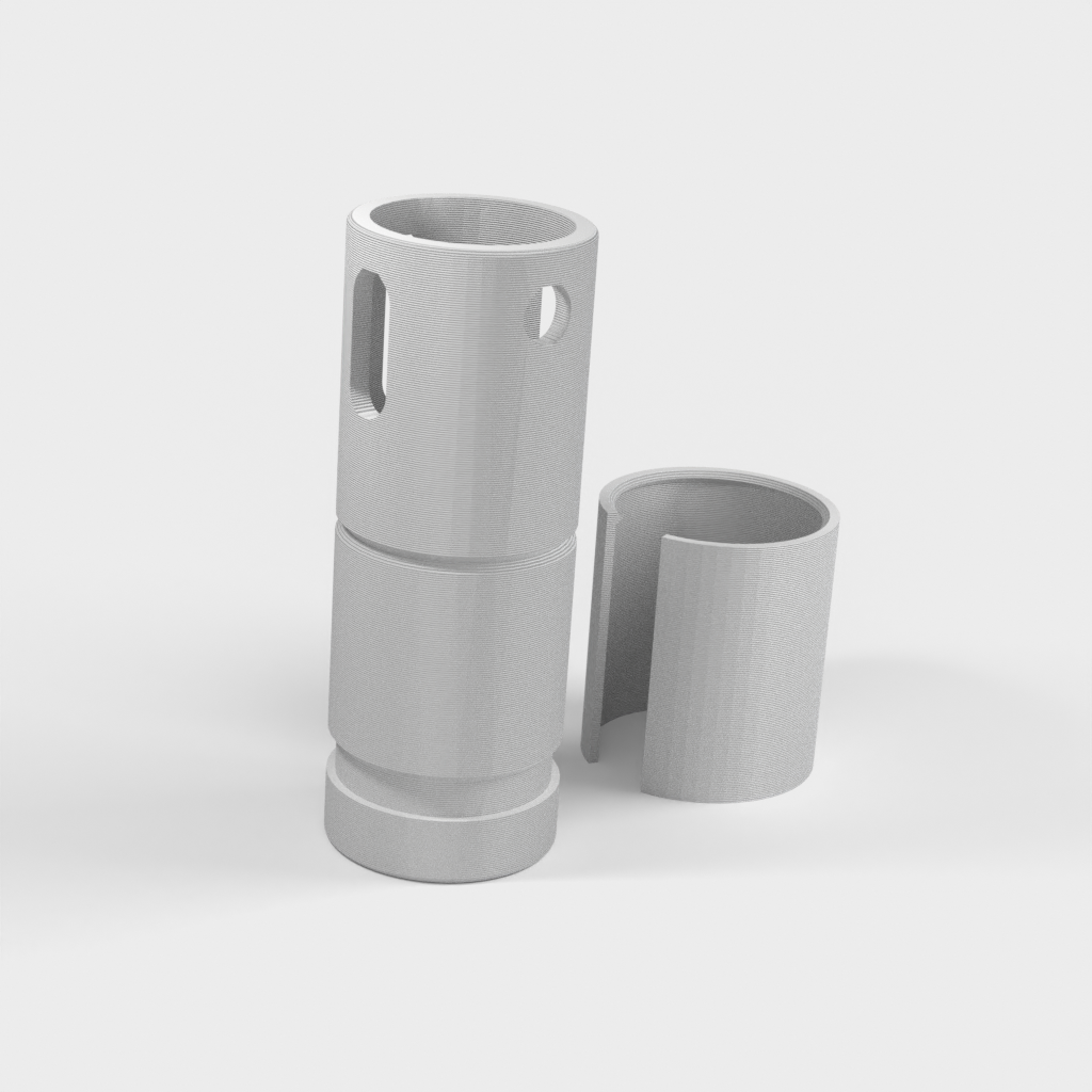 Součástí balení jsou 2 provedení. Jedna je základní hubice bez speciálních funkcí, kterou lze použít jako výchozí bod pro výrobu dalších adaptérů a nástrojů k vysavači. Druhá má omezovací klíč (aby se nástroj nemohl volně otáčet), ventilační otvory (aby se umožnilo malé množství proudění vzduchu, které zabraňuje pulzování vysavače, protože cítí nízký průtok vzduchu) a otočný kryt ventilátoru (který vám umožňuje nastavit množství procházejícího proudění vzduchu)