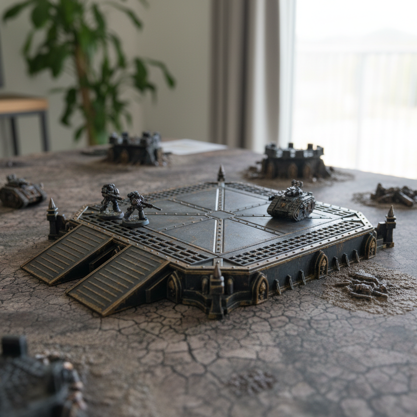 Tato 3D tisknutelná Přistávací plocha je robustní kus Wargame terénu, ideální jako strategická budova nebo opevnění na vašem bojišti. Perfektně se hodí pro hry Warhammer 40k, kde dodá detailní, dystopickou atmosféru jakékoli bitvě mezi imperiálními silami, silami Chaosu nebo Xenos silami.
